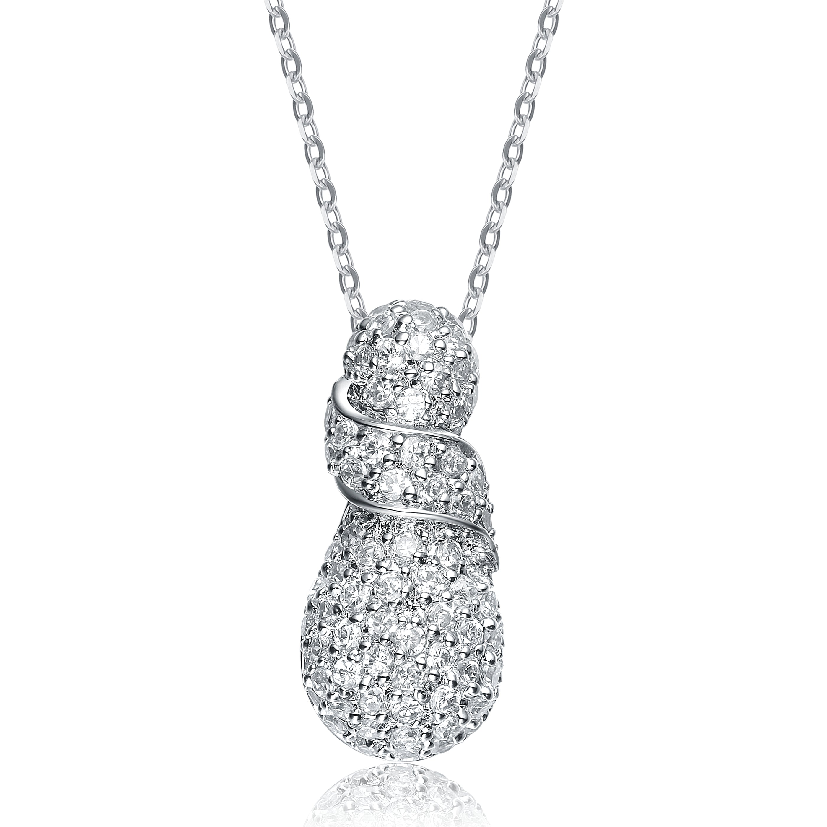 Classy and luxurious, this magnificent pendant looks to be fit for a queen. Made of multiple brilliant white cubic set in a teardrop format with a slight ribbon twirl on top makes this necklace the perfect gift.
