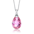 An eye-catching pink cubic zirconia briolette dangles from a .925 Sterling silver mounting in this luminous necklace. The pendant hangs from a matching .925 Sterling silver chain with a spring ring clasp