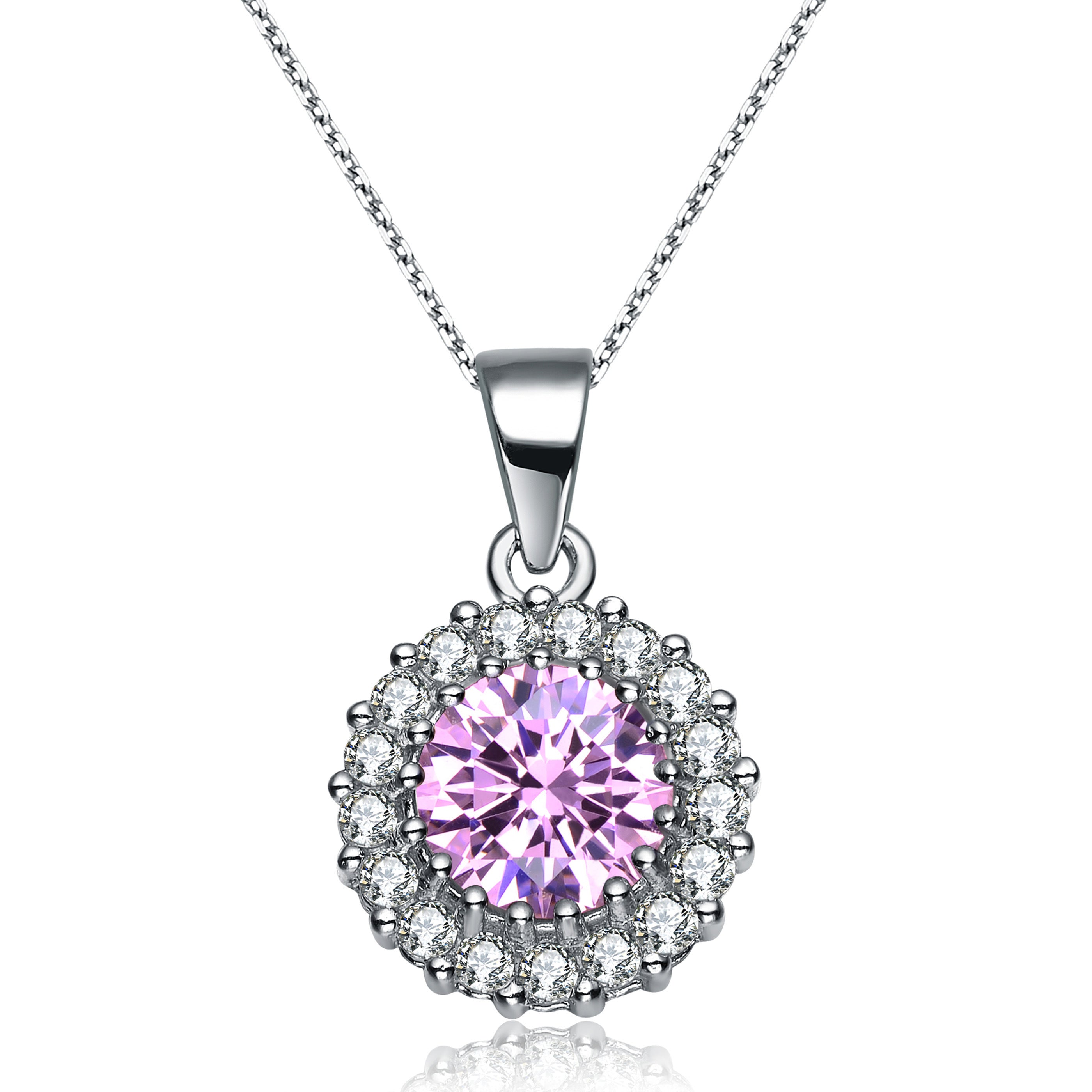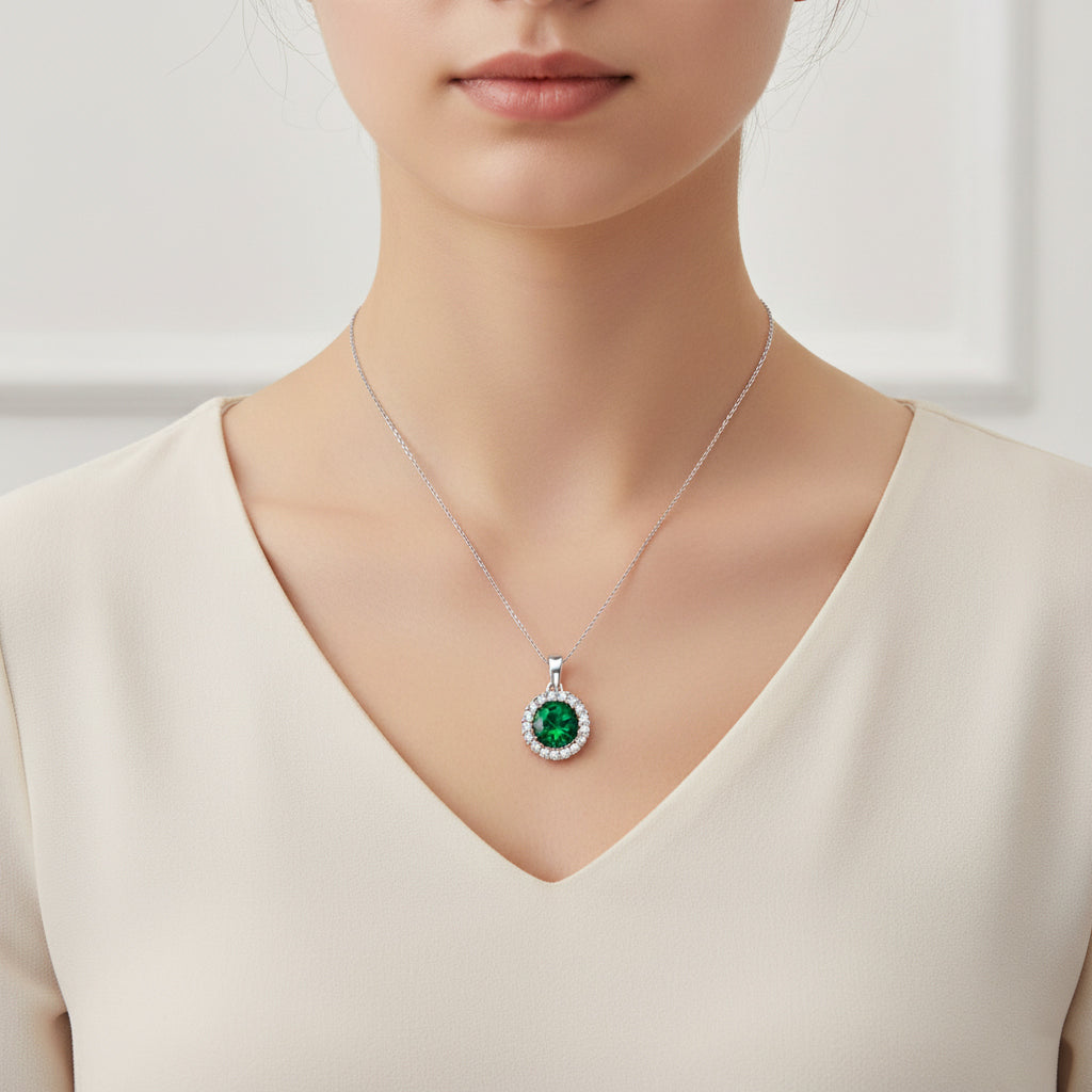 Polished and versatile, this sterling silver necklace features a brilliant round-cut cubic zirconia pendant that delivers refined sparkle with a minimalist silhouette. Elegant enough for evening wear yet effortless for everyday styling, this timeless piece pairs beautifully with both casual and formal looks. Finished with high-shine plating and suspended from an adjustable chain, it’s a must-have essential for any jewelry collection. Available in your choice of White, Emerald, Pink, Rose Pink, Gold, Rose Gold, Emerald Gold, or Emerald Rose Gold.