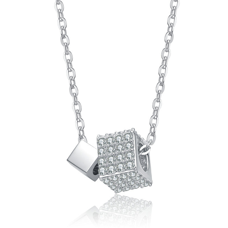 This refined necklace features a graceful two-square pendant design that blends modern structure with timeless sparkle. One frame shines with a sleek polished finish, while the other glistens with clear cubic zirconia accents for added brilliance. Crafted in sterling silver and plated in luminous white gold, it offers lasting shine and elegance. A versatile piece perfect for everyday wear or special occasions.