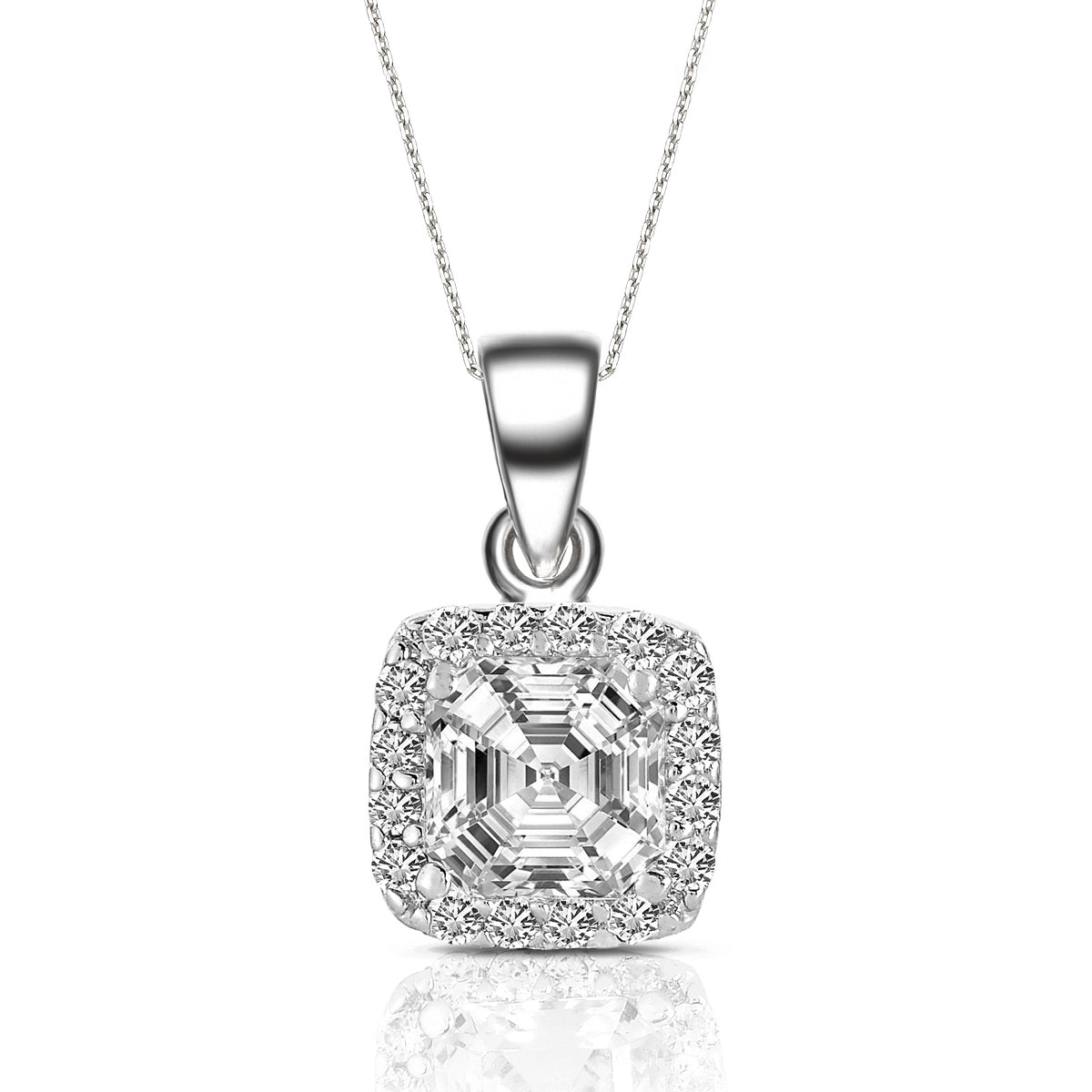 Cz .925 Sterling Silver Rhodium Plated Square Shape Pendant