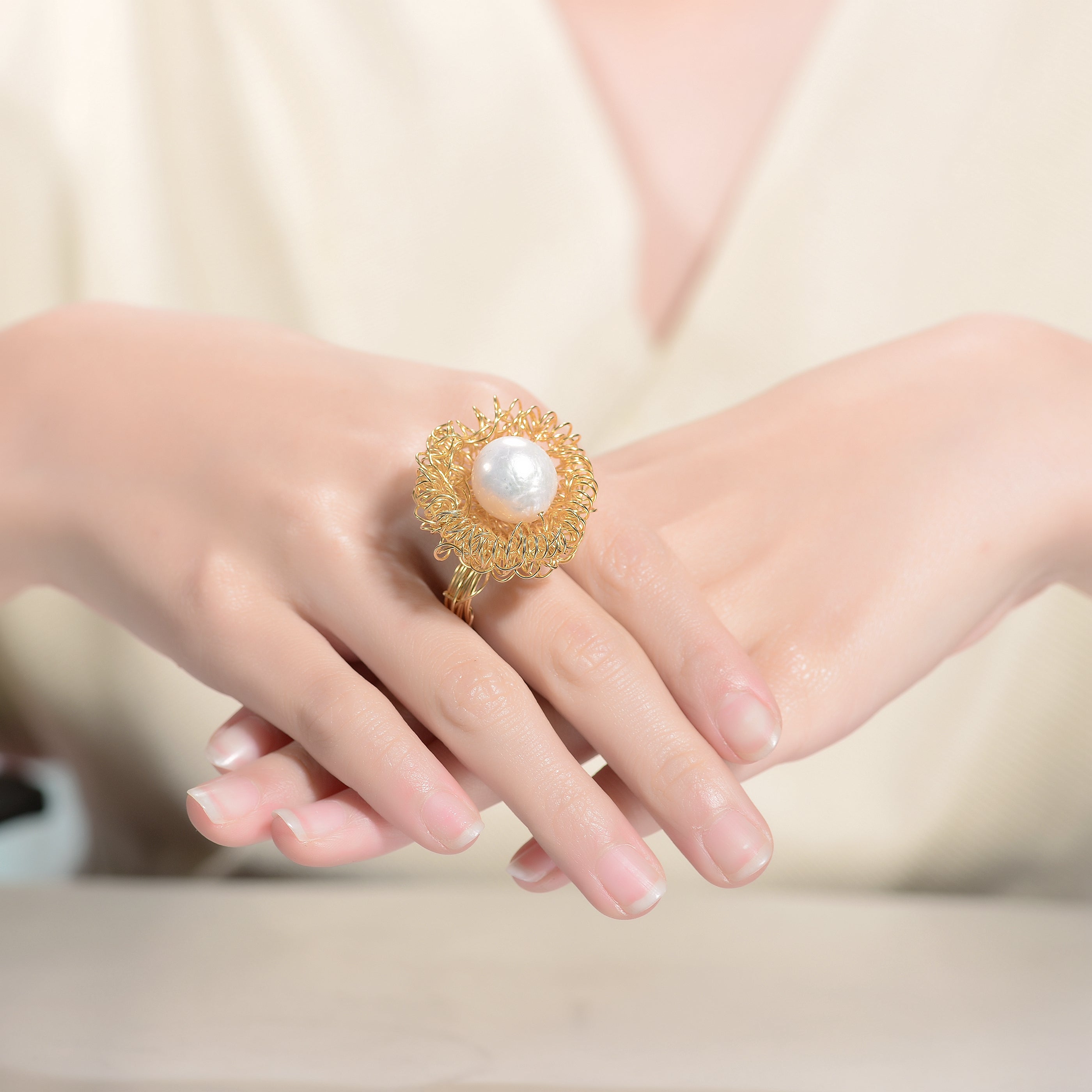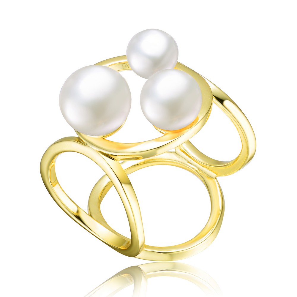 Delphine Three Pearl Triangle Golden Geometric Ring