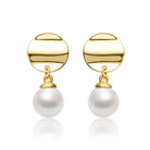 Elegant Double Drop Dangle Earrings. Sterling Silver with 14k Yellow Gold Plating. White Pearl & Gold Medallion Coin for allure. Timeless beauty in a unique design. Embrace sophistication with these exquisite earrings.