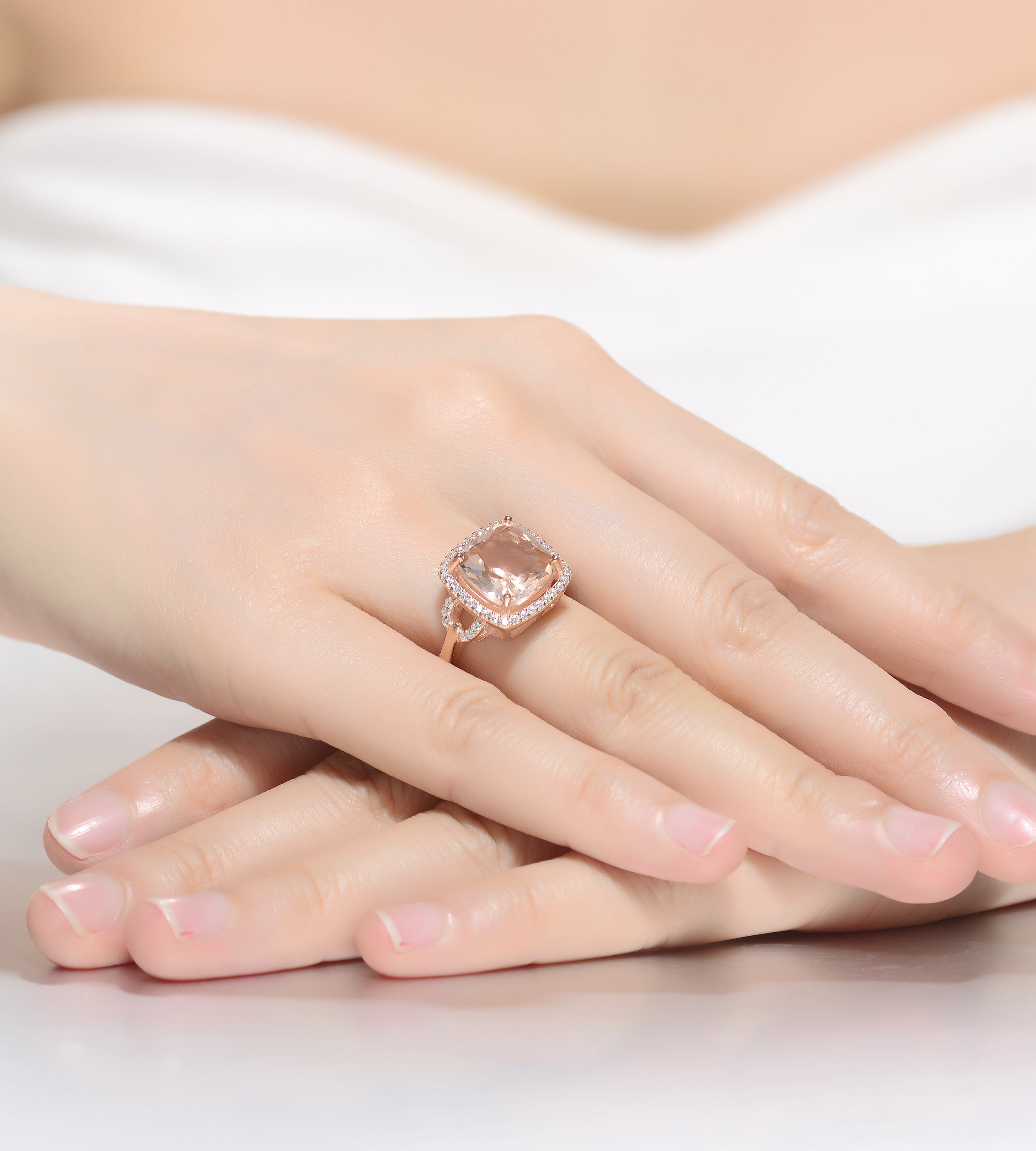 - Stone Type: Morganite and Clear Cubic Zirconia