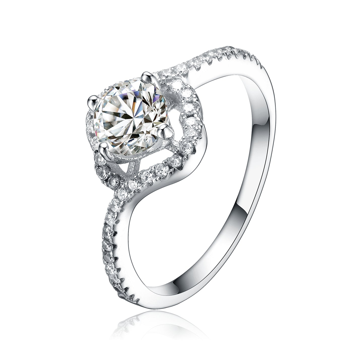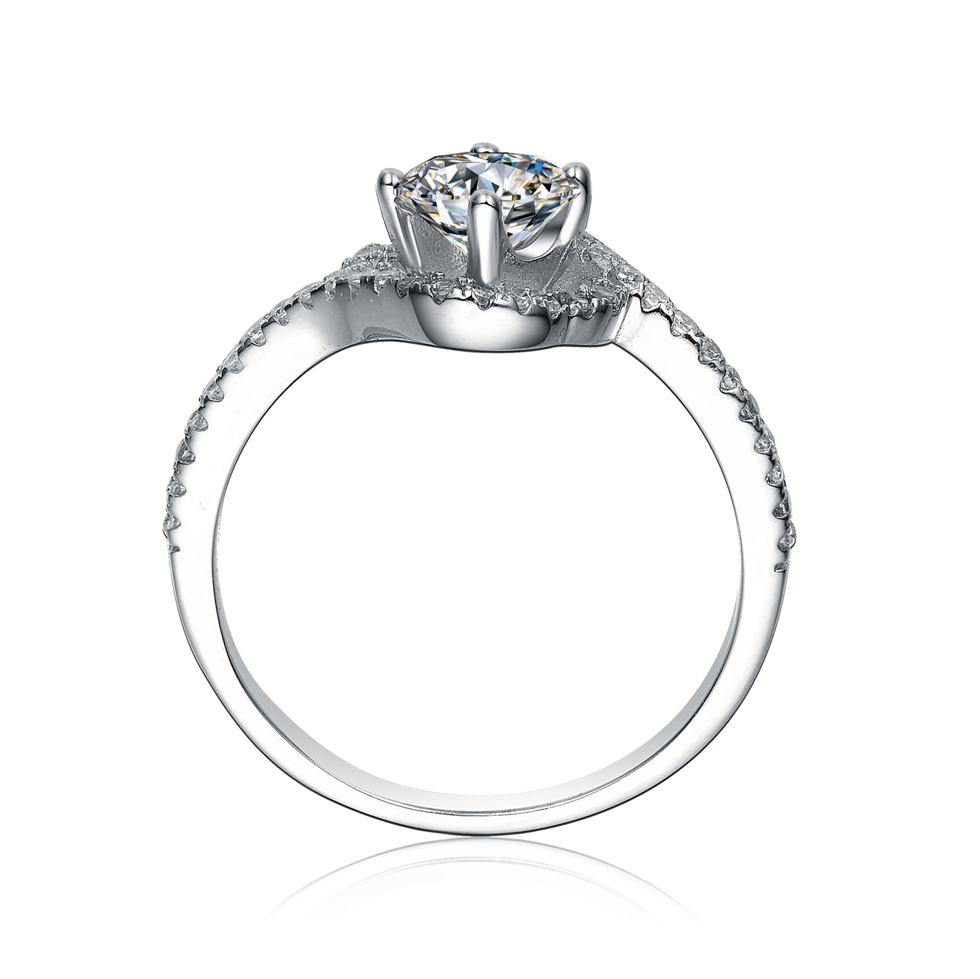 This sophisticated ring features a brilliant round-cut cubic zirconia solitaire that instantly draws the eye. The split band design adds depth and dimension, creating a contemporary twist on a classic style. Complementary cubic zirconia accents enhance the sparkle without overpowering the centerpiece. Crafted from sterling silver, the band offers durability with a refined finish. The balanced proportions make it comfortable for daily wear while still feeling special. This ring delivers timeless elegance with a modern edge.