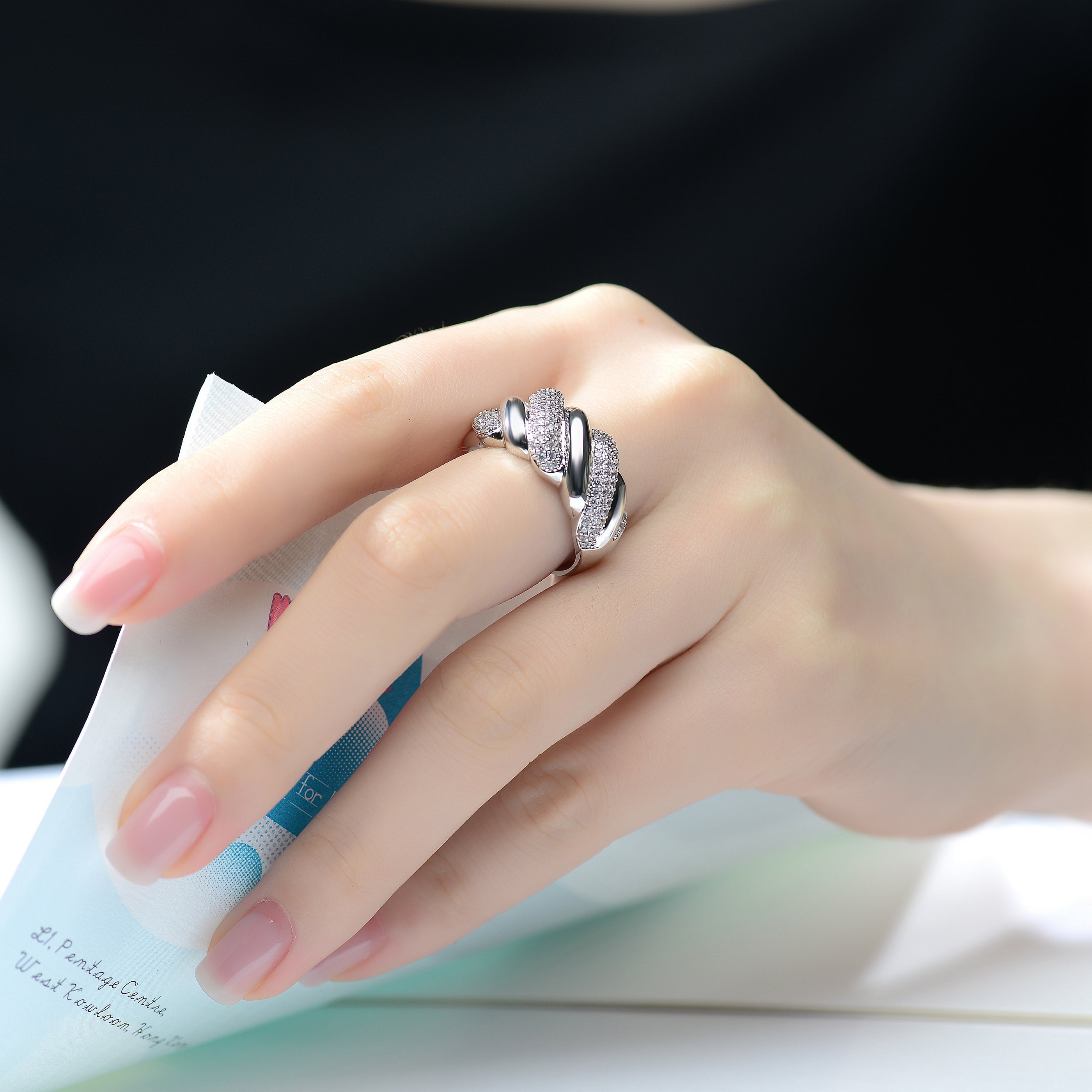 - Wavy twisted band ring design