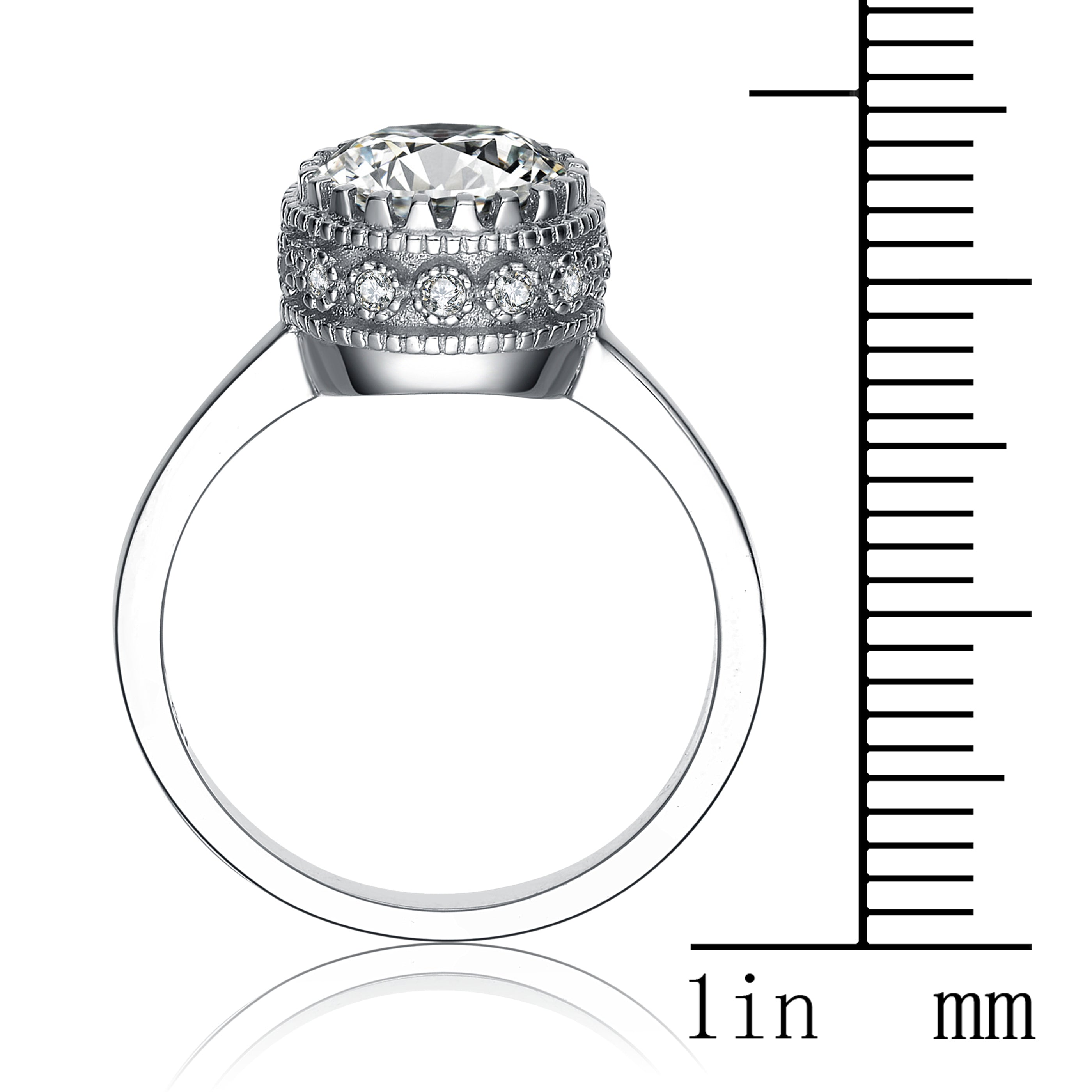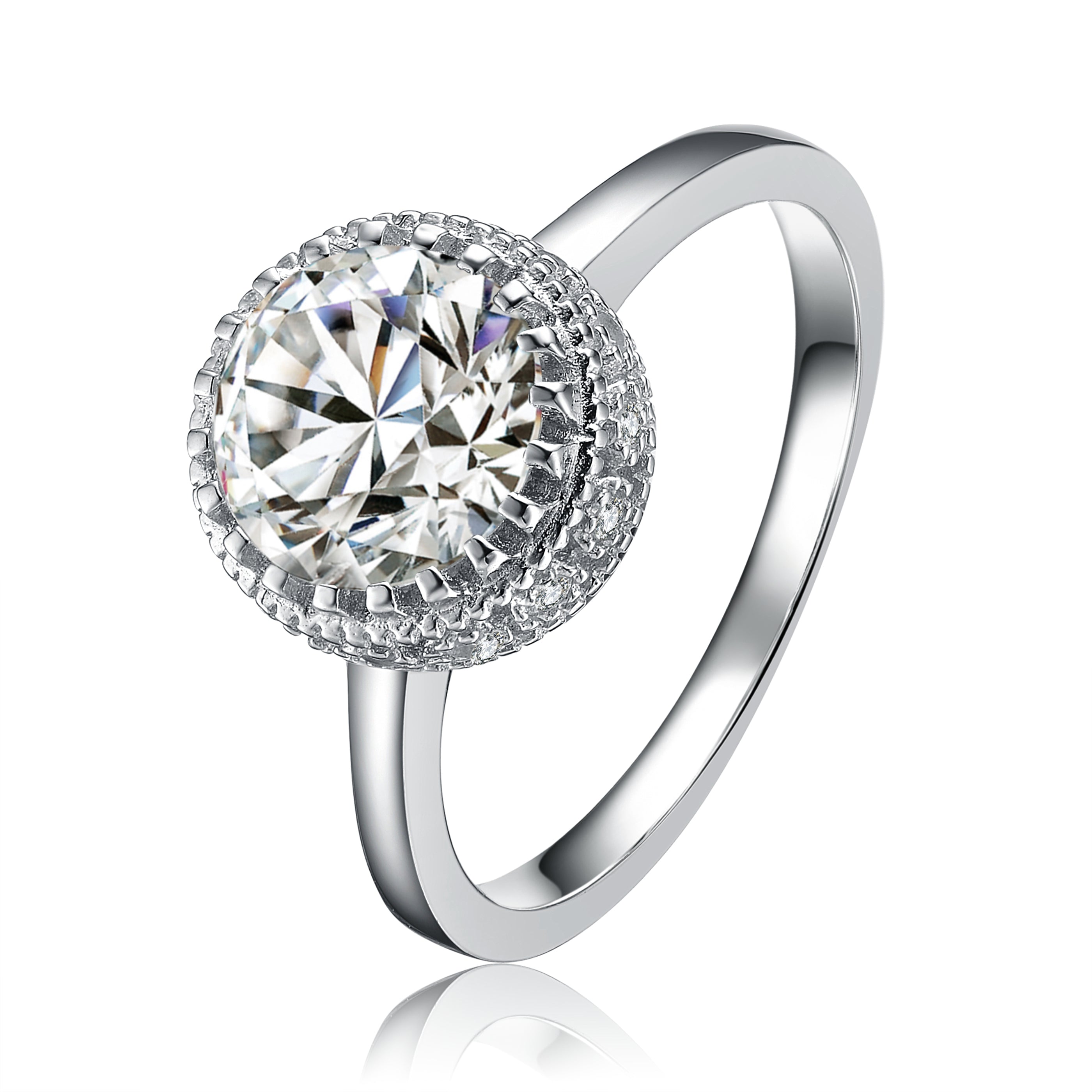 This striking ring features a large round cubic zirconia framed by a sparkling halo for a timeless statement look.