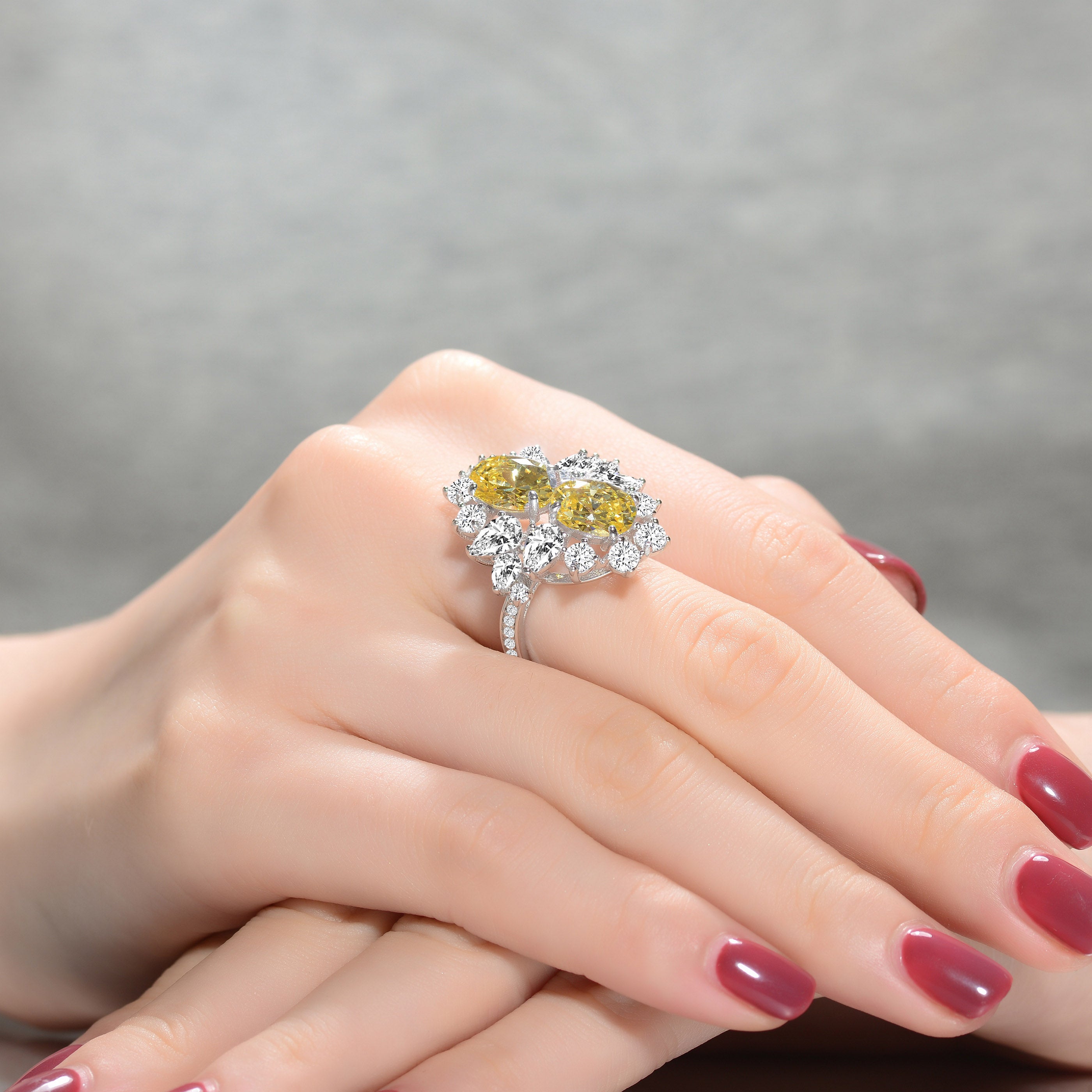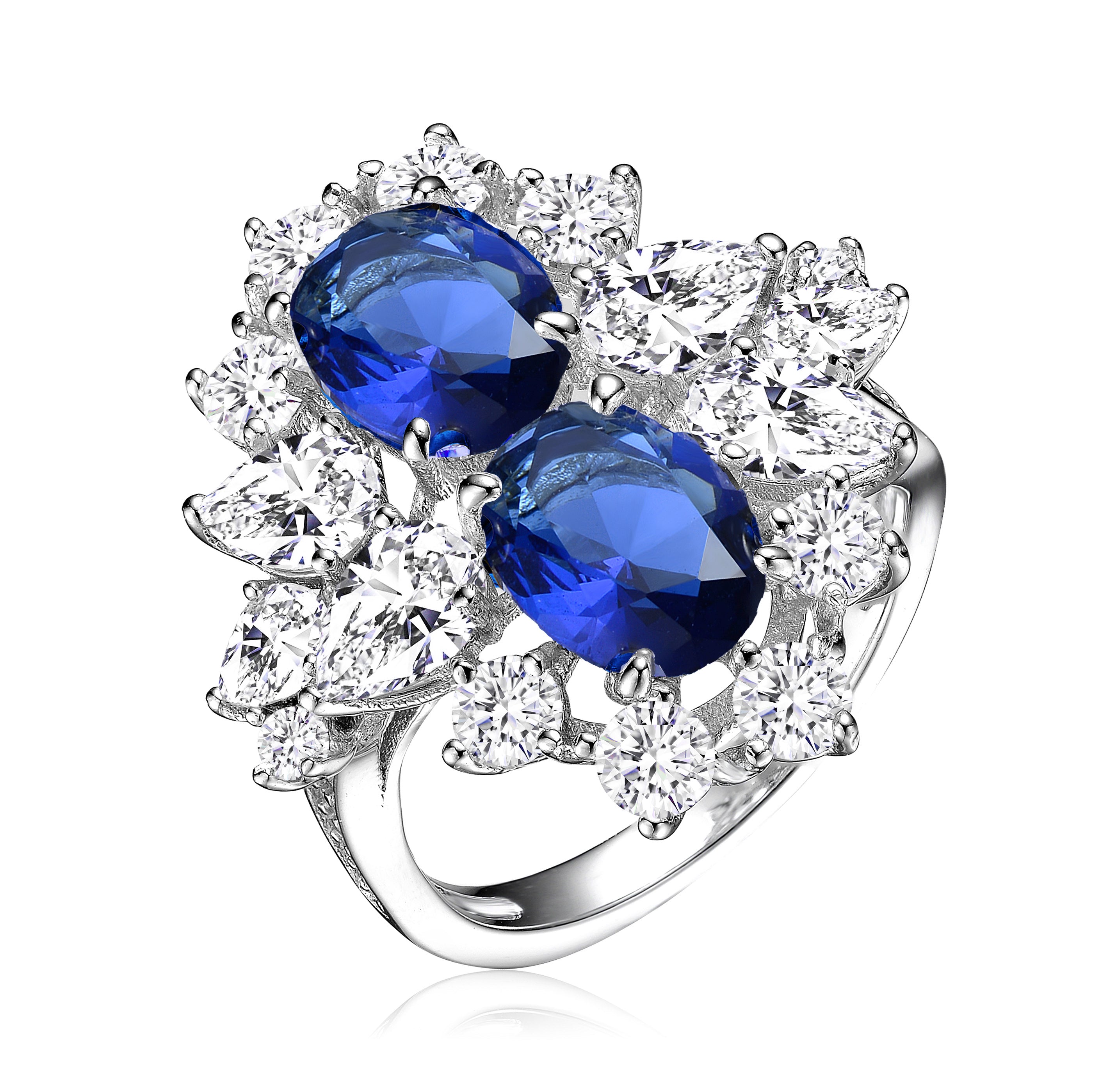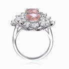 Chic and eye-catching, this cocktail ring features a distinctive clustered design highlighted by two oval-cut morganite-inspired cubic zirconia stones. The center stones are beautifully accented with a mix of clear pear-shaped and round cubic zirconia, creating dimension and radiant sparkle. Crafted from .925 sterling silver with a sleek rhodium-plated finish, this elegant ring is designed to stand out with modern sophistication.