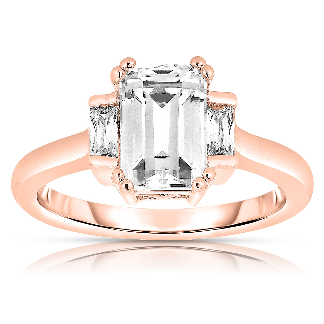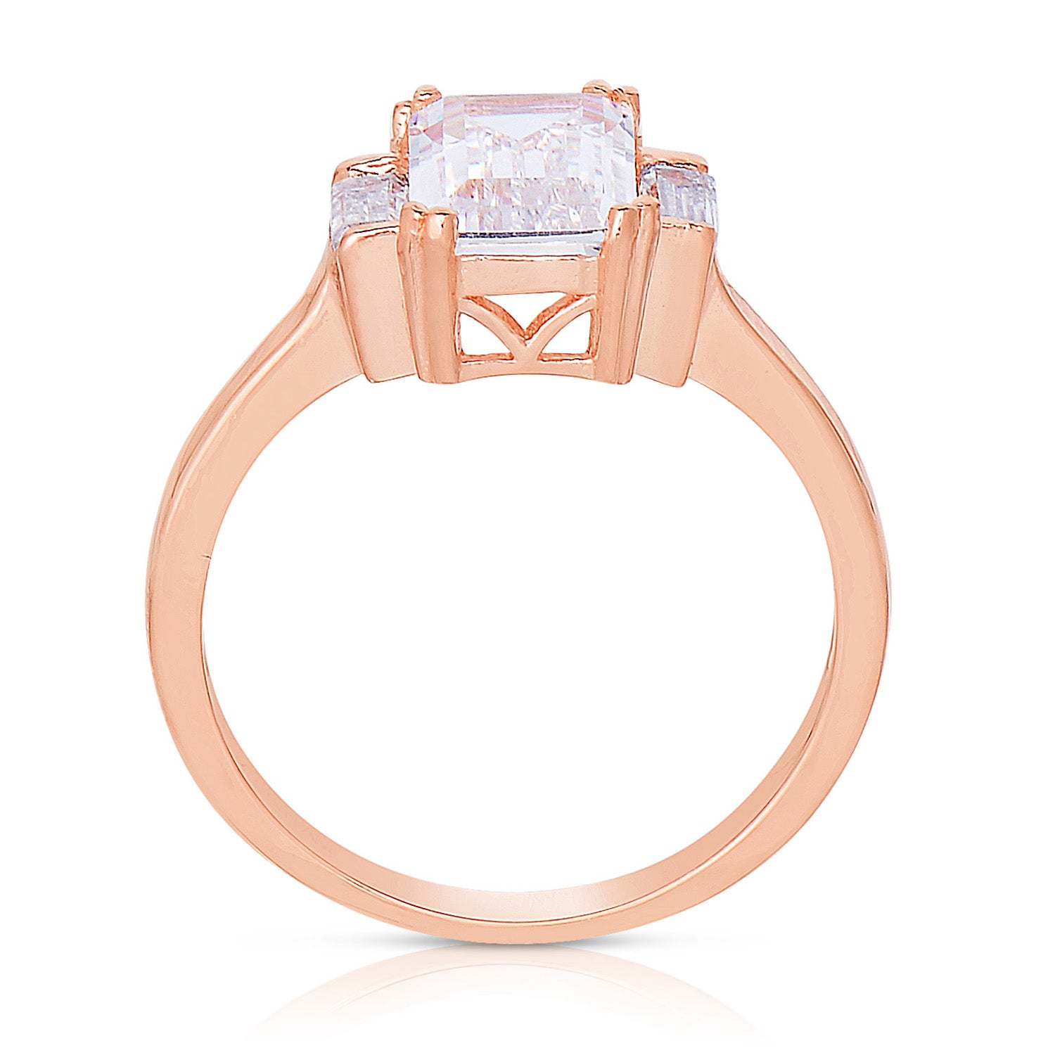 This eye-catching ring is crafted from sterling silver with a refined rose or white finish and showcases brilliant Asscher-cut cubic zirconia stones. Designed to reflect light from every angle, this elegant piece adds instant sophistication and standout sparkle to any look.