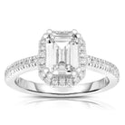This standout ring is crafted from sterling silver and designed to impress with its bold Asscher-cut cubic zirconia centerpiece. Framed by a halo of smaller sparkling stones, the high-polish setting enhances the brilliance and clean geometric lines of the design. Elegant yet eye-catching, this ring adds a refined statement to any look, whether worn alone or paired with complementary pieces.