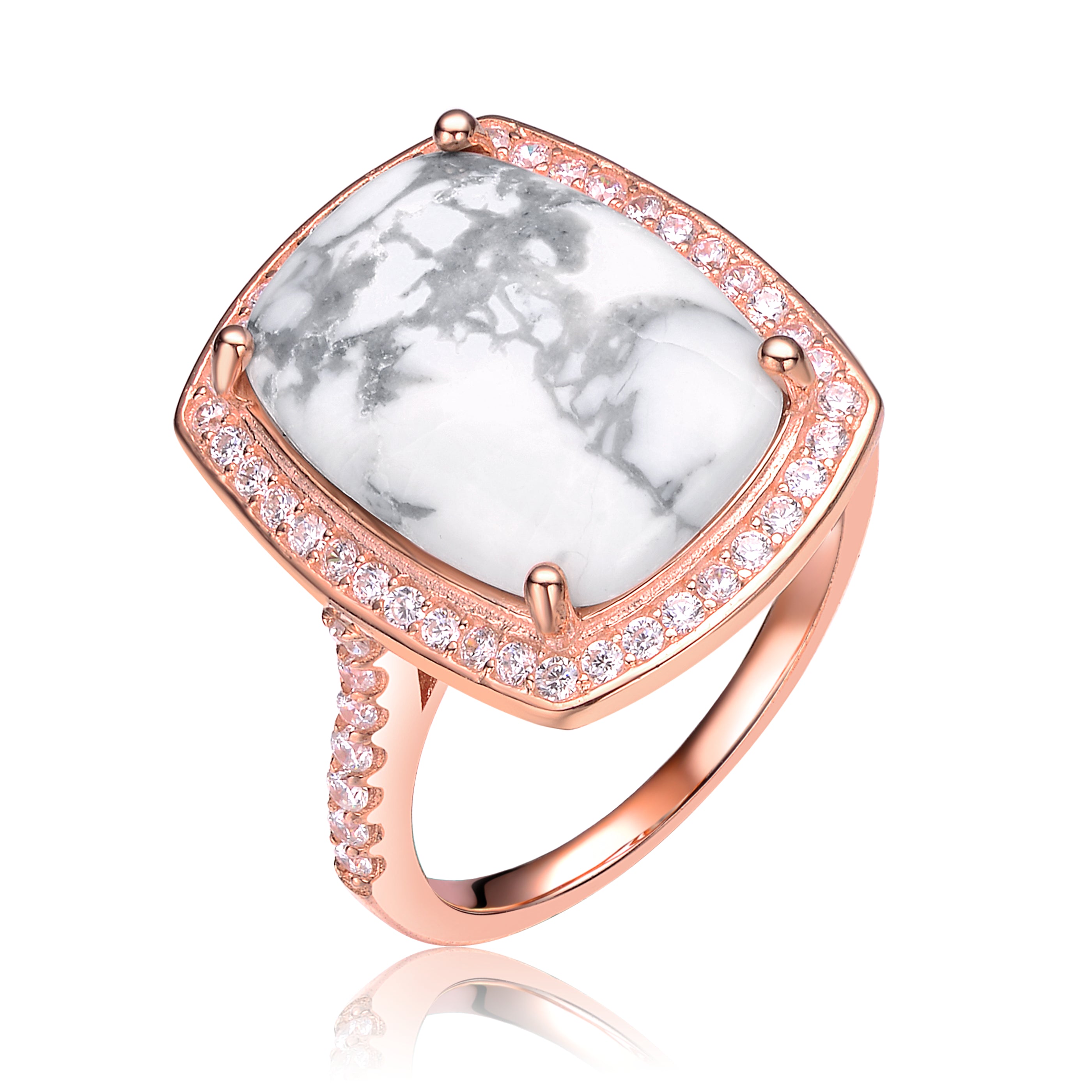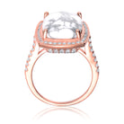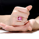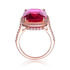 Bold and eye-catching, this statement ring is designed to stand out in any jewelry collection. A striking red or white cubic zirconia centerpiece is framed by a halo of shimmering smaller cubic zirconia stones, creating a radiant path around the center stone. Additional accent stones extend gracefully along the band, all set in sterling silver with elegant 18K rose gold plating for a luxurious finish.