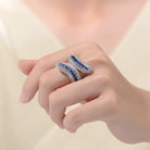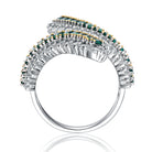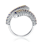 This elegant bypass ring is crafted from sterling silver and finished with a refined combination of white gold and 14K gold plating for a striking two-tone look. At the center, emerald-cut cubic zirconia stones are prong-set to create a radiant focal point, complemented by clear pear- and baguette-cut cubic zirconia accents along the flowing frame. Leaf-inspired details at each end add a graceful, sophisticated touch to the design.