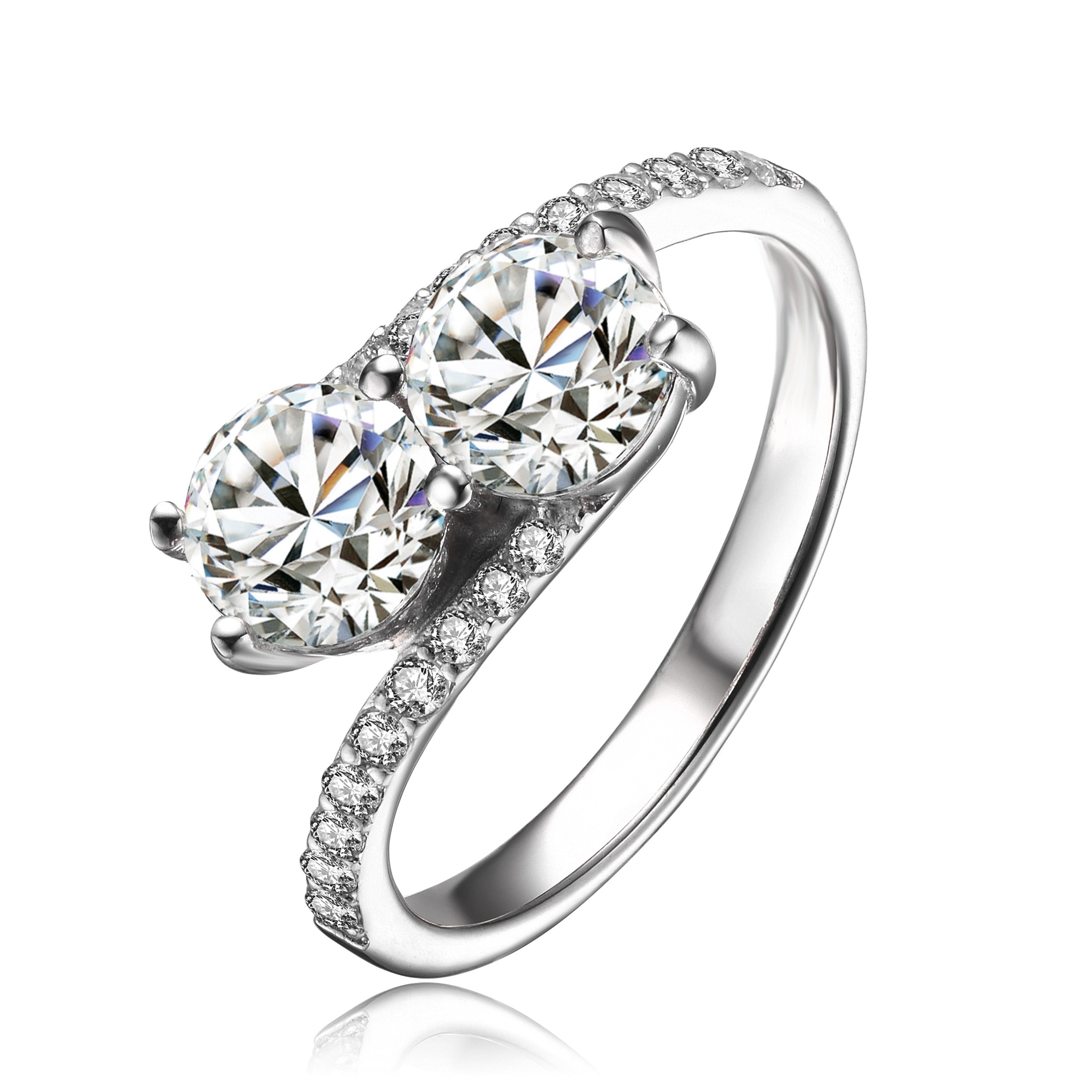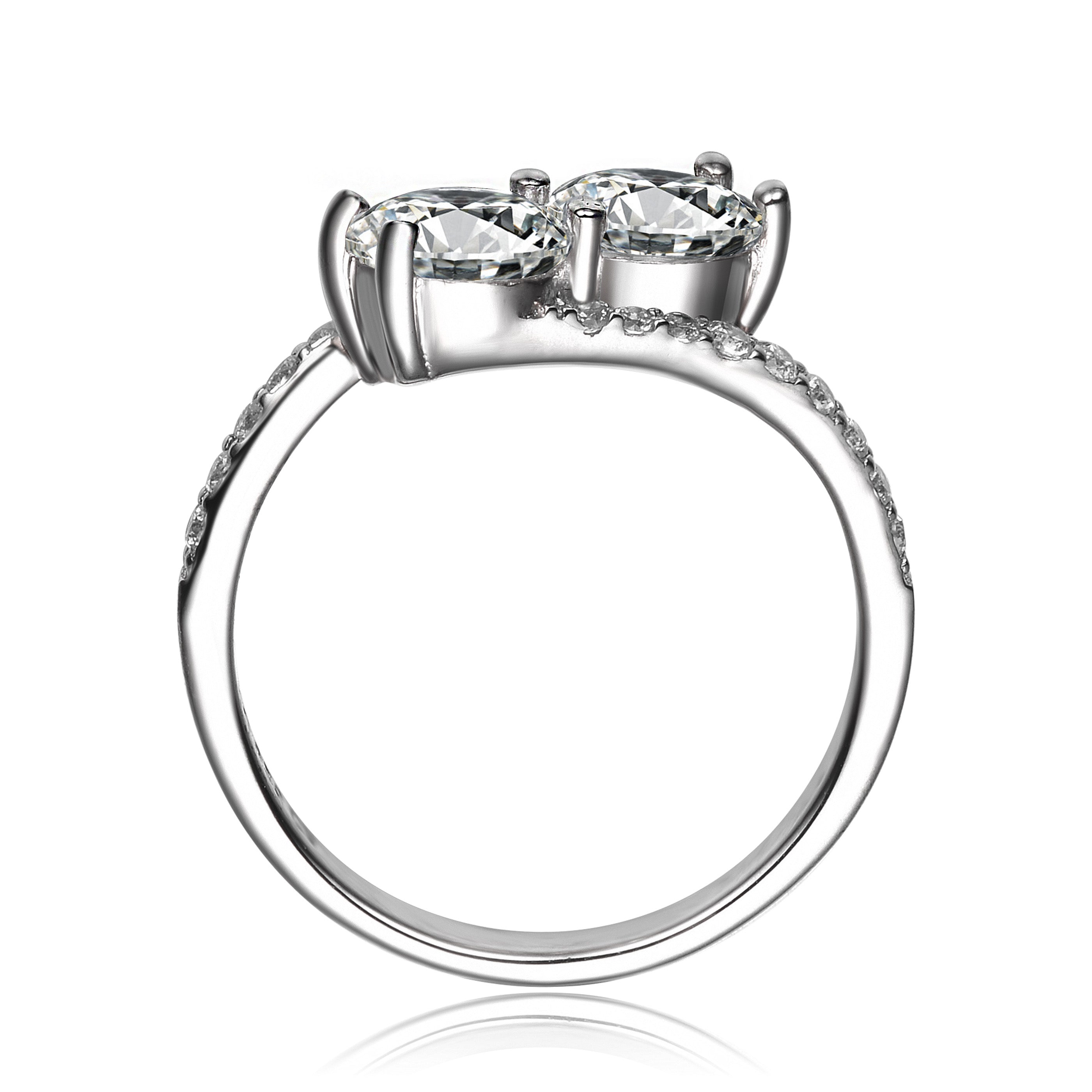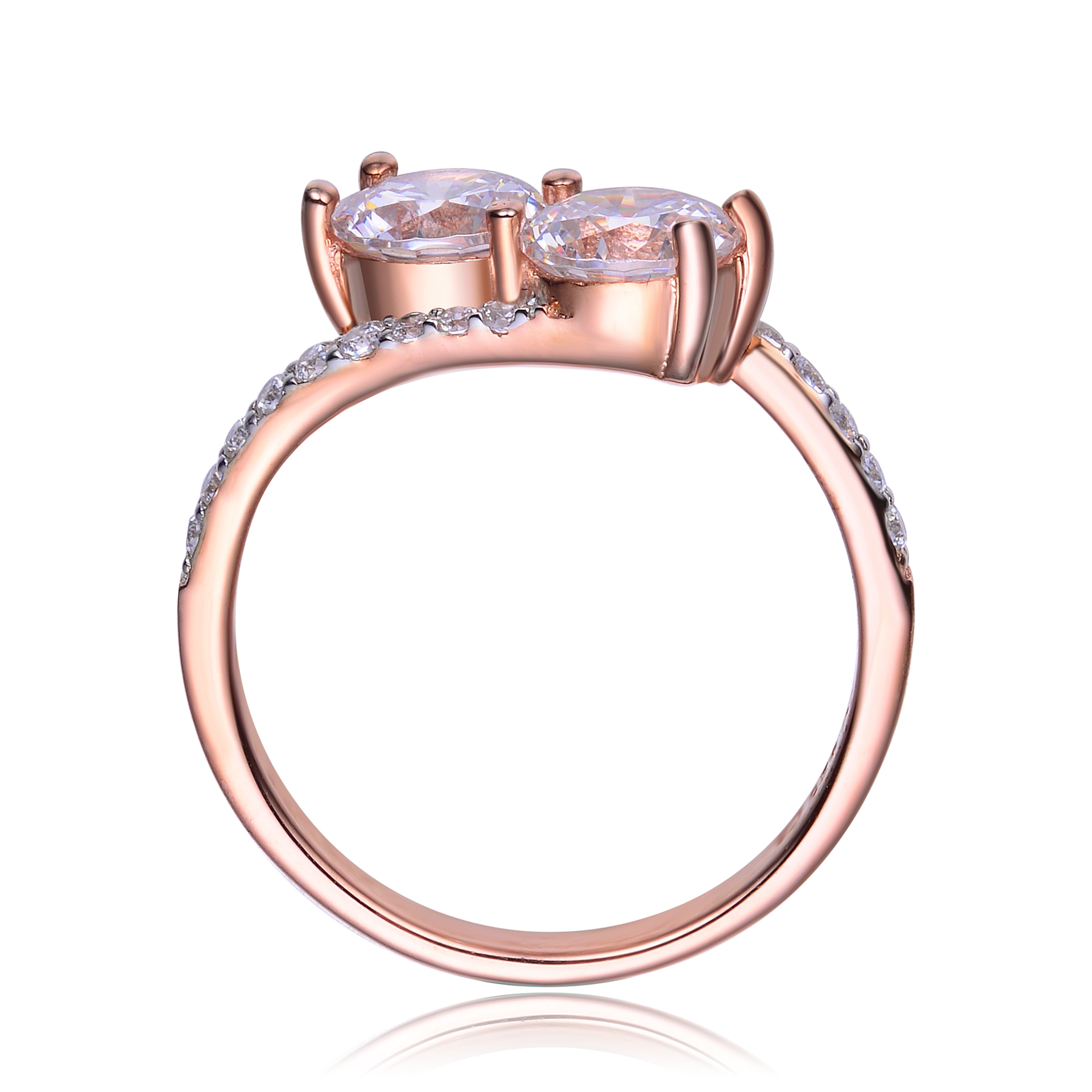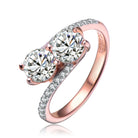 This elegant twisted-style ring is crafted from sterling silver and finished with a warm rose gold–plated shine. Two brilliant round cubic zirconia stones take center stage, while additional clear cubic zirconia are pavé-set along the gently twisted band for continuous sparkle. The refined silhouette offers a modern yet timeless look that’s perfect for everyday wear or gifting.