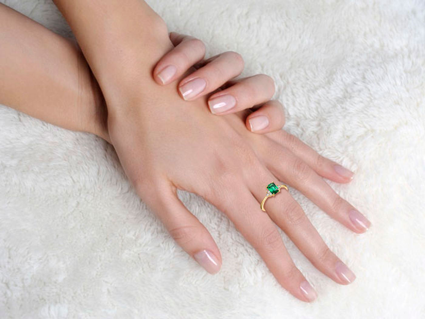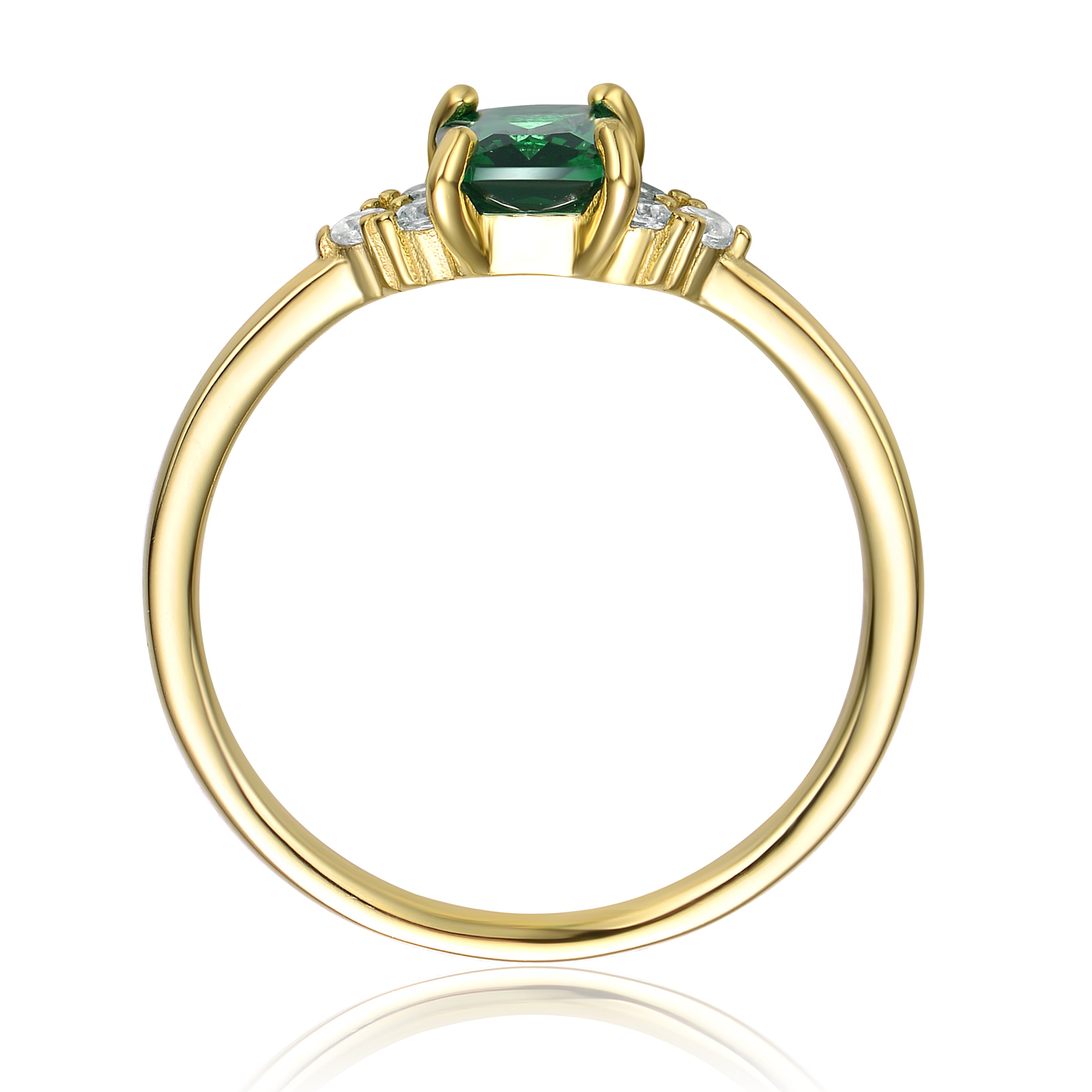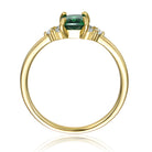 This solitaire-inspired ring blends vintage charm with modern sparkle. An emerald-cut green cubic zirconia sits in a classic prong setting, surrounded by clustered clear cubic zirconia accents. Crafted in sterling silver with bright yellow gold plating, it offers lasting shine and elegance. The slim band keeps the design graceful and wearable. Perfect for anniversaries or special moments, it delivers meaningful beauty. A timeless ring that adds refined color and brilliance.