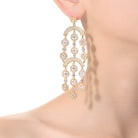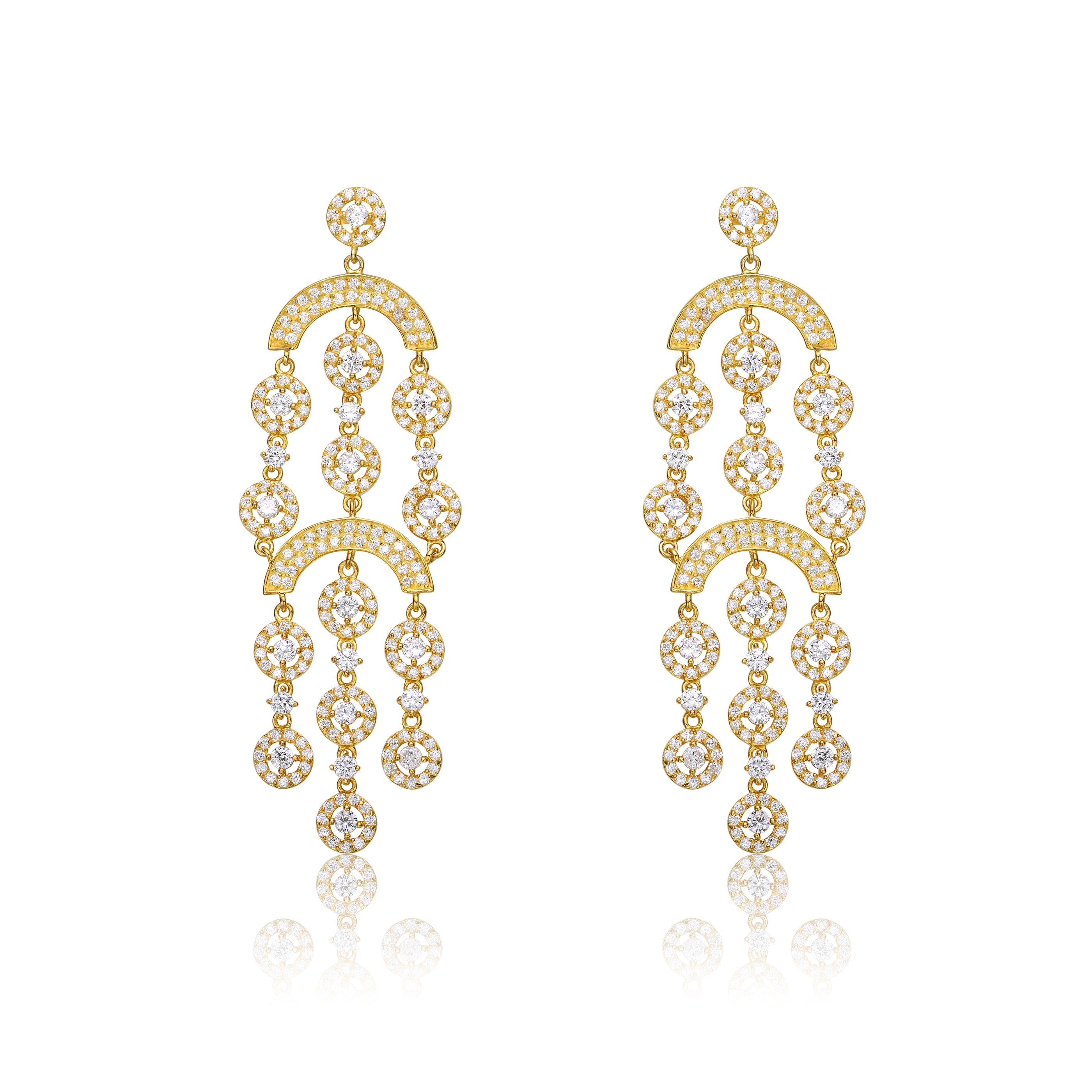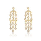 Sterling Silver 14k Yellow Gold Plated with Cubic Zirconia Double Tier Chandelier Vintage Dangle Earrings. Celebrate your next special occasion by gifting these stunning chandelier earrings featuring a double tier design. Sparkling round brilliant cut -like cubic zirconias arranged in circular discs and linear drops give them an airy sophistication just right for your next formal or semi-formal event. Finish your look with these sterling silver 14k yellow gold plated drop earrings secured by post butterfly backs..
