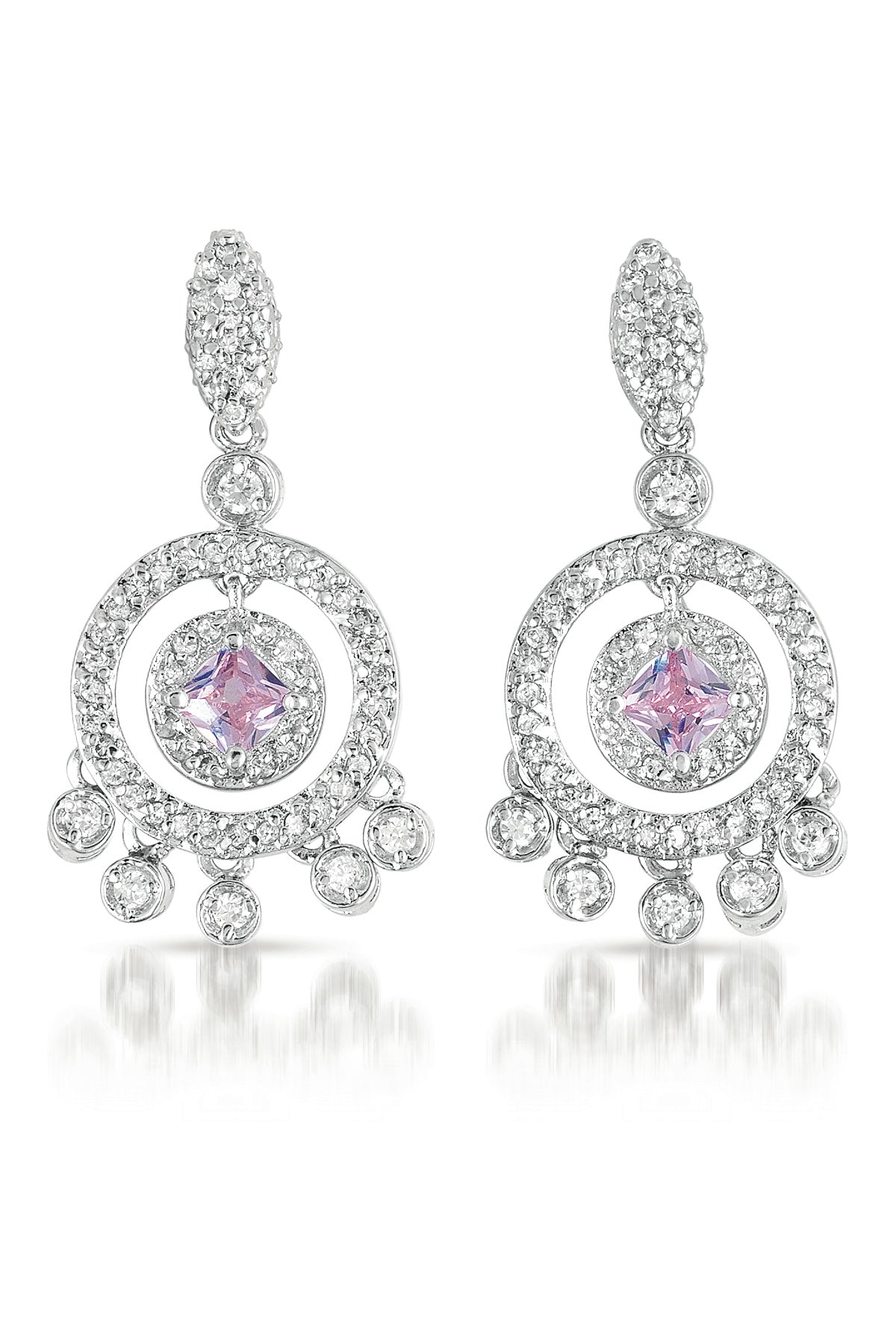 These chandelier earrings feature a circular design with cascading cubic zirconia for refined glamour.