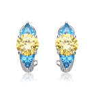 These hoop earrings feature a captivating blend of colors. Crafted from sterling silver, the hoops showcase alternating sections of vibrant blue and sunny yellow cubic zirconia stones. The blue stones add depth and intrigue, while the yellow stones provide a cheerful contrast. The secure latch-back closure ensures comfort and security. Whether worn for a special occasion or to brighten up your everyday style, these earrings are a versatile choice that effortlessly transitions from day to night.