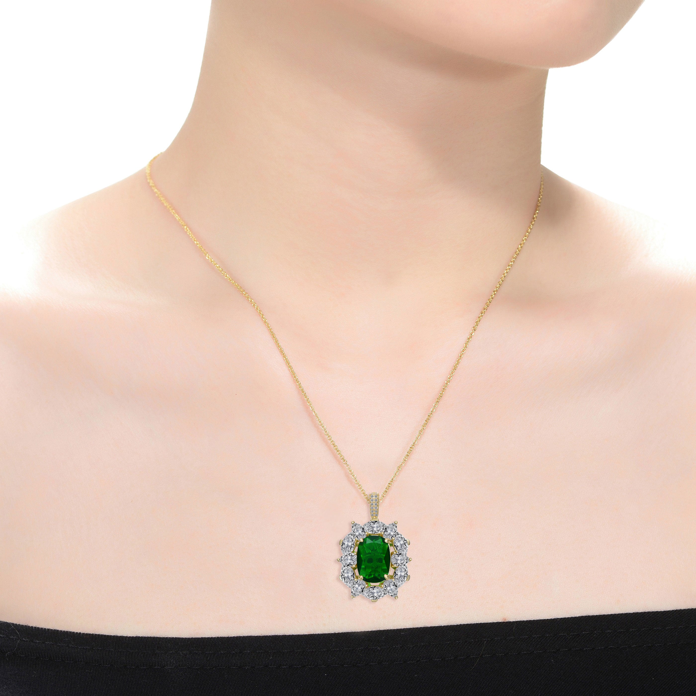 Sterling Silver 14k Gold Plated Green Cubic Zirconia Oval Halo Cluster Necklace. This brightly polished sterling silver 14k gold plated necklace features an oval cut emerald-green cubic zirconia halo cluster pendant elegantly nestled on a delicate chain. Smaller cubic zirconia stones glisten around this center stone in a dazzling cluster, all set on a tapered bail with a cable chain. A lobster clasp keeps this necklace in place.
