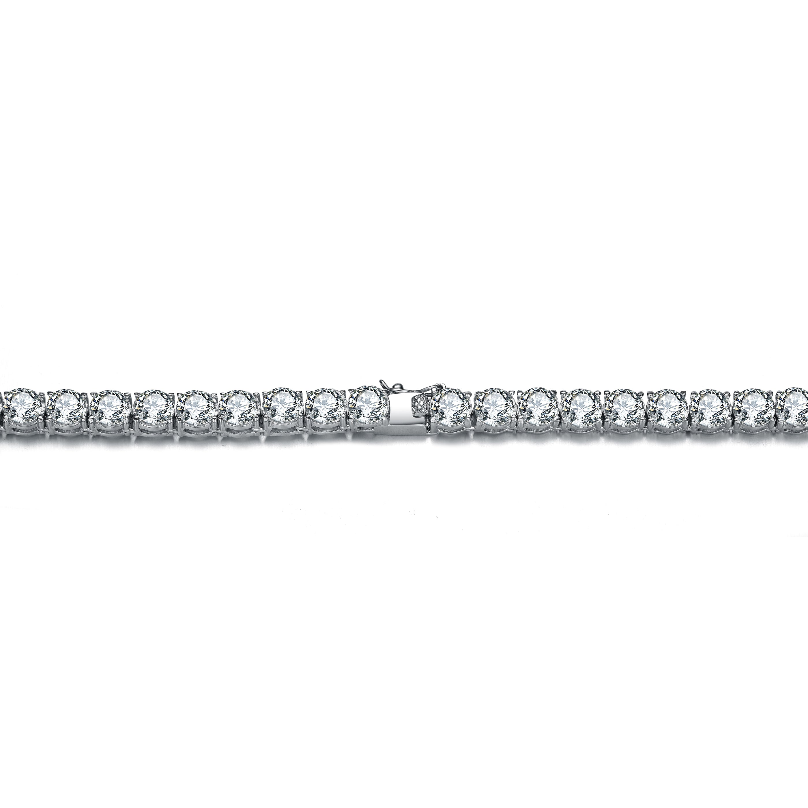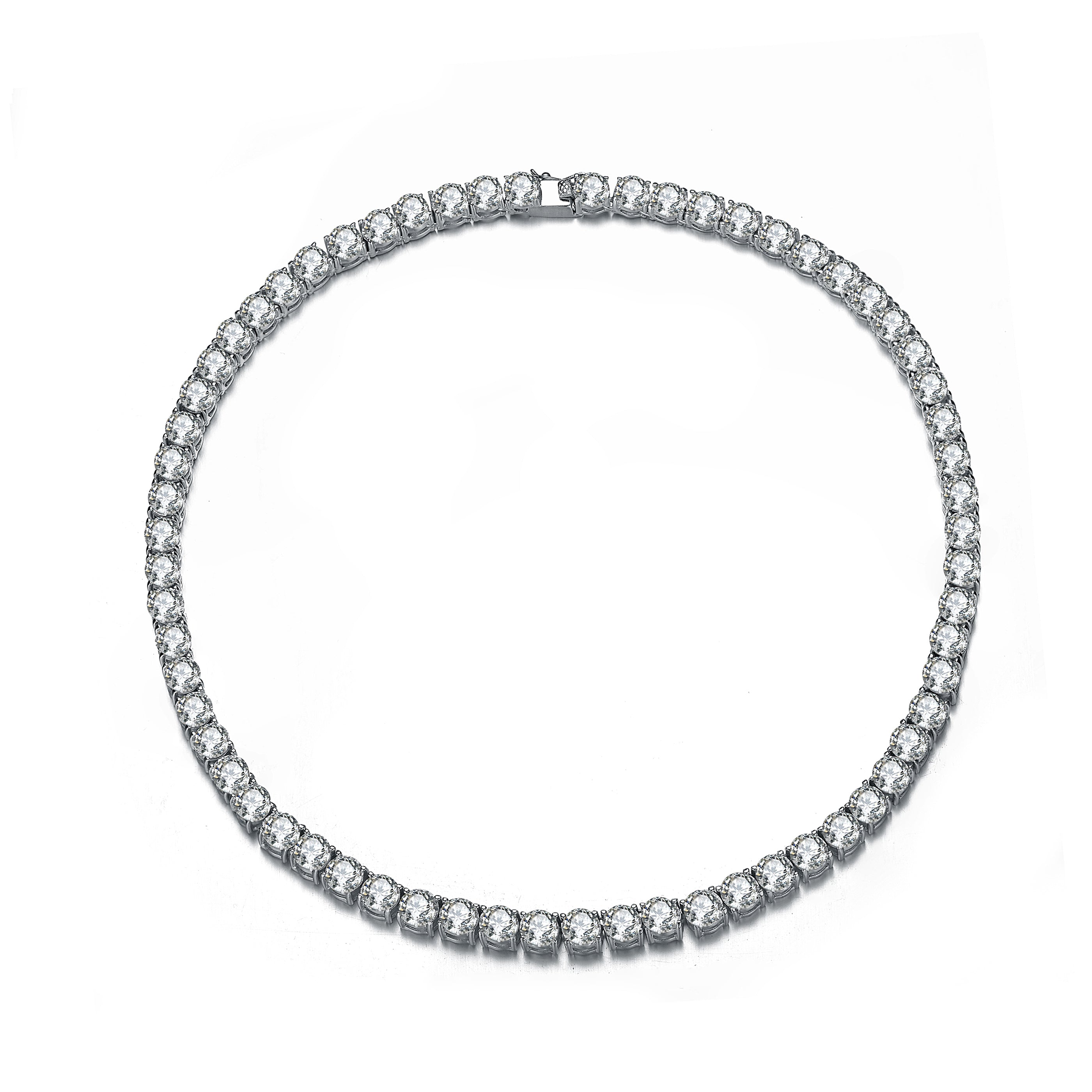 Timeless and elegant, this classic tennis necklace is designed with a continuous line of brilliant round-cut cubic zirconia stones that deliver exceptional sparkle. Crafted from .925 sterling silver and finished with a sleek rhodium-plated sheen, the necklace is secured with a refined box clasp for a polished, comfortable fit. A versatile essential that elevates any look, available in your choice of Gold or Silver.