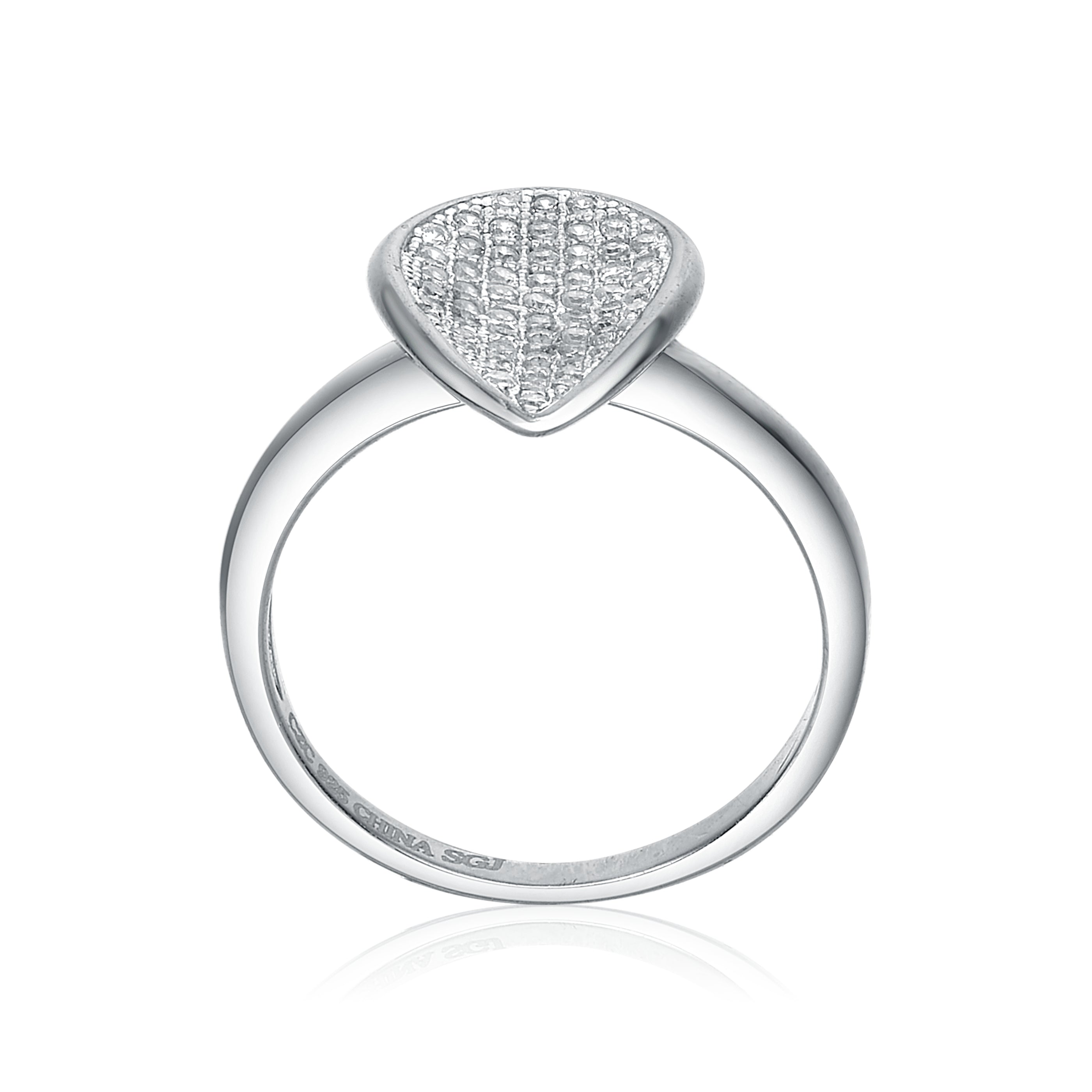 This elegant ring showcases a teardrop silhouette formed by pavé-set stones that shimmer with refined brilliance. Its graceful shape makes it an easy, polished choice for daily styling.