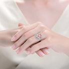 This artistic two-tone ring blends geometric detail with radiant sparkle. The contrasting finishes and refined accents create a modern, eye-catching design that adds instant sophistication to any look.