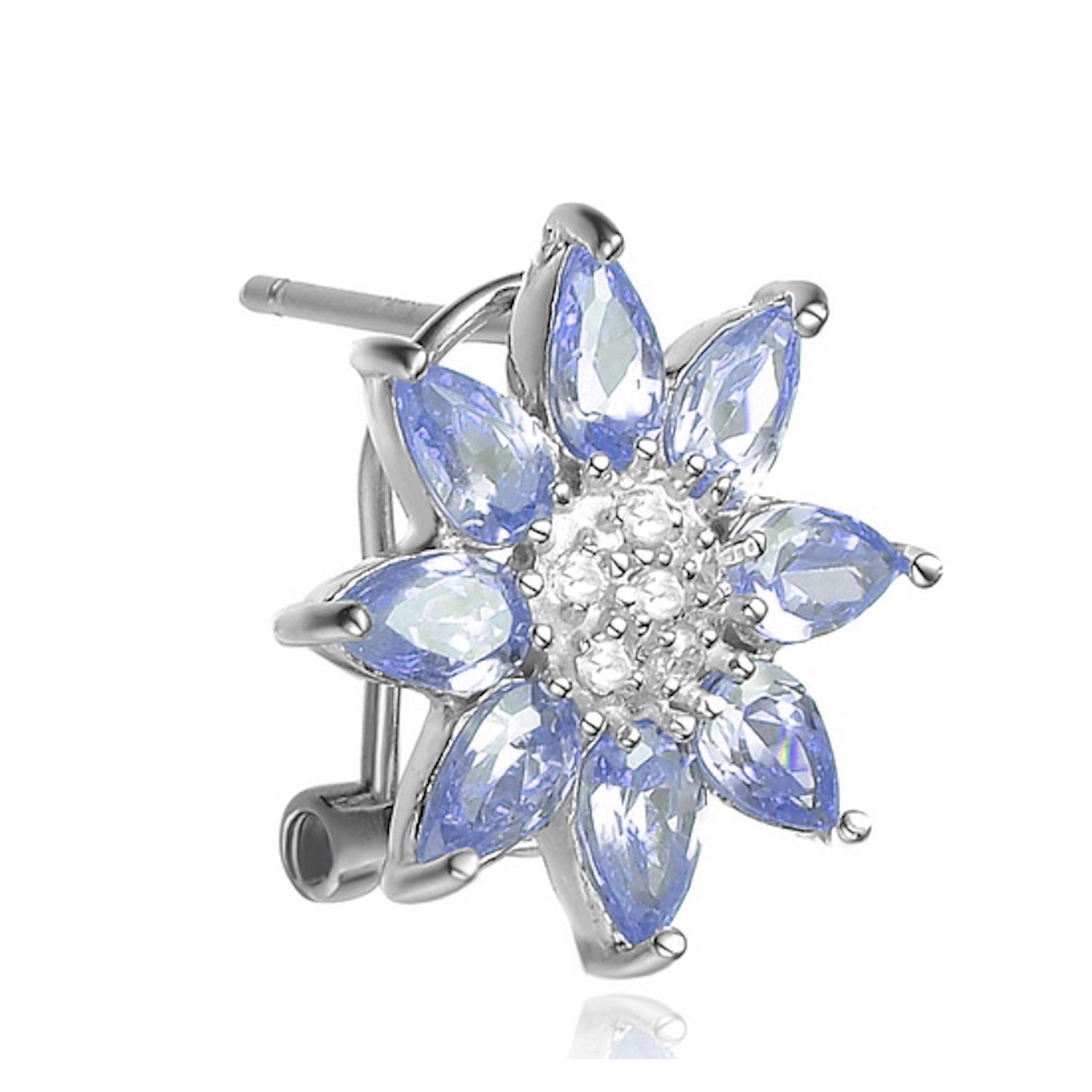 For a dainty look, try these pretty flower sterling silver knob earrings. A clear circular cubic zirconia is at the center surrounded by pink cubic zirconia petals.