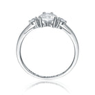 - Design: Three-stone ring with heart-shaped center