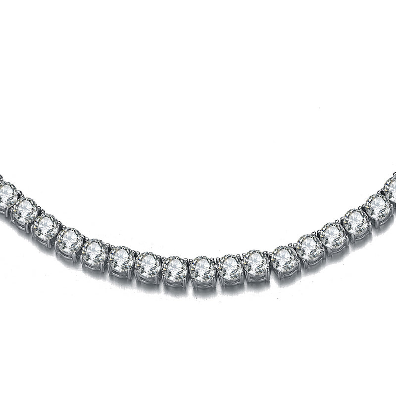 Refined and endlessly radiant, this eternity circle link tennis necklace showcases a seamless row of brilliantly set cubic zirconia that delivers captivating sparkle from every angle. The classic round basket design creates depth and fluidity, while the luminous white gold finish enhances its timeless elegance. Designed for versatility and lasting appeal, this polished piece elevates both everyday styling and sophisticated evening looks with effortless grace.