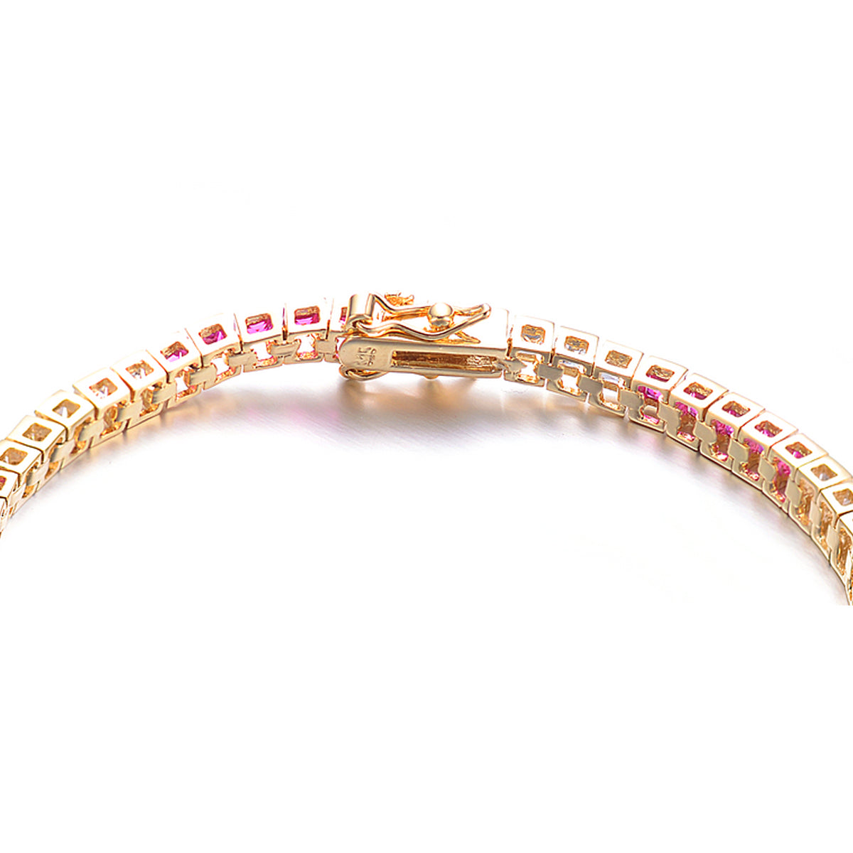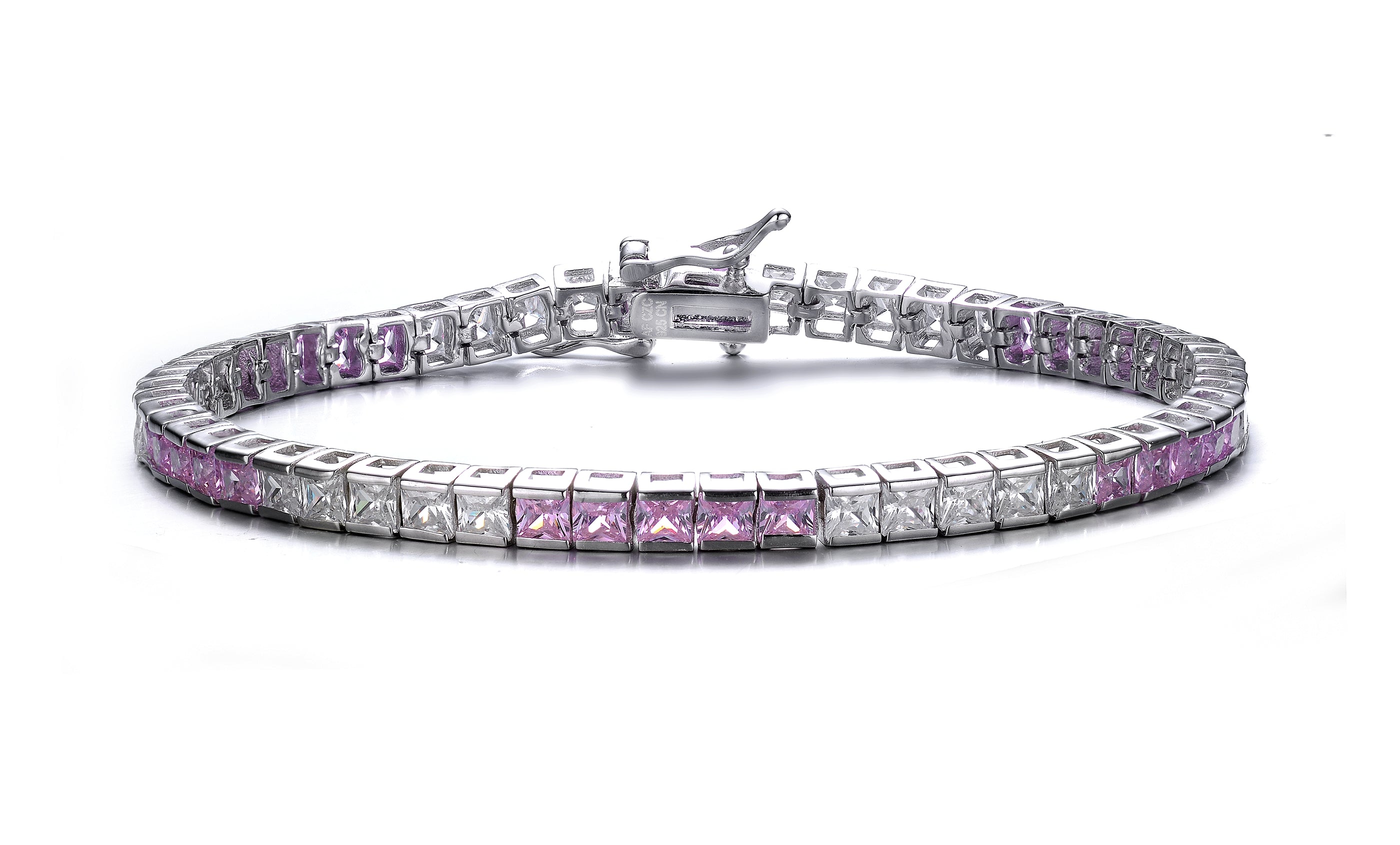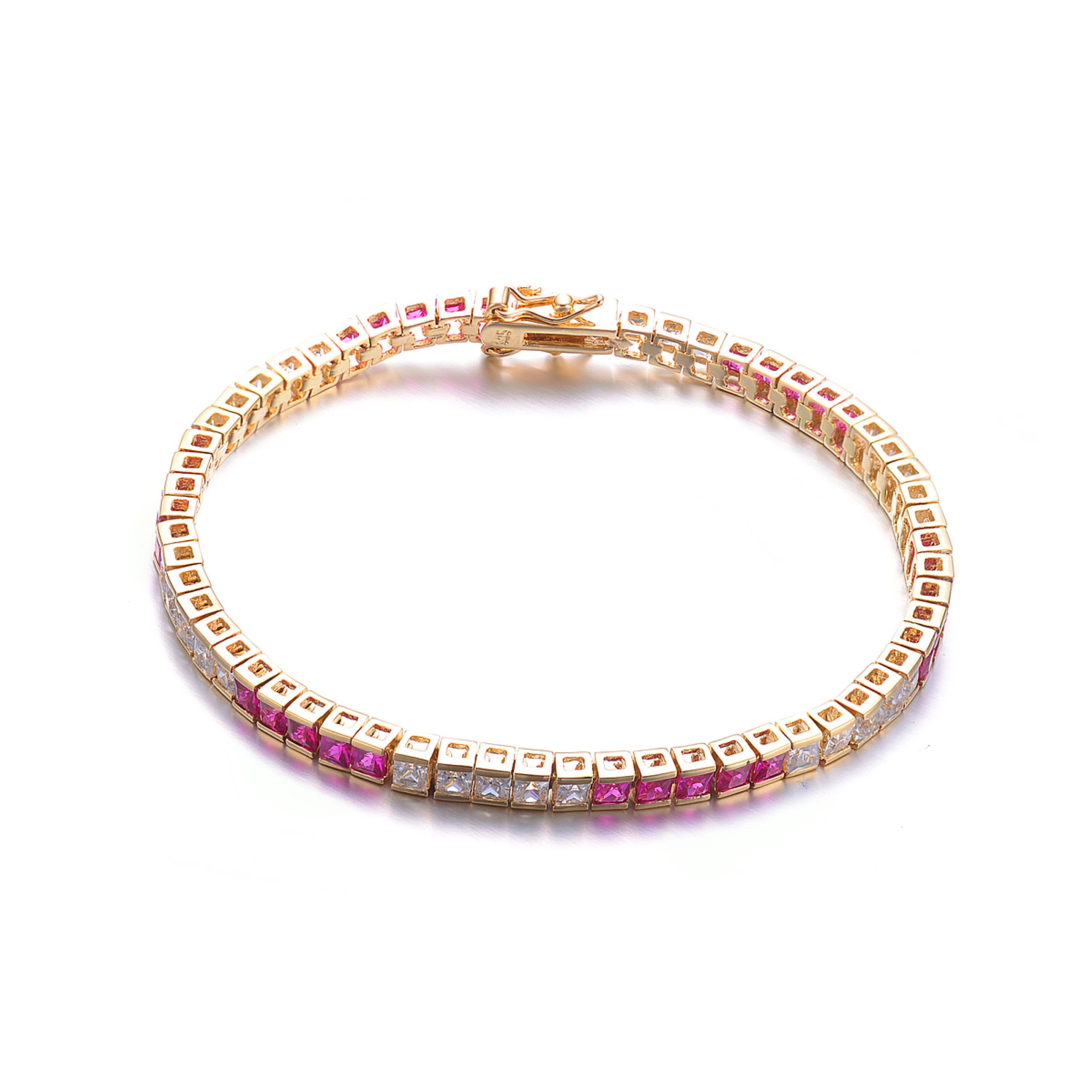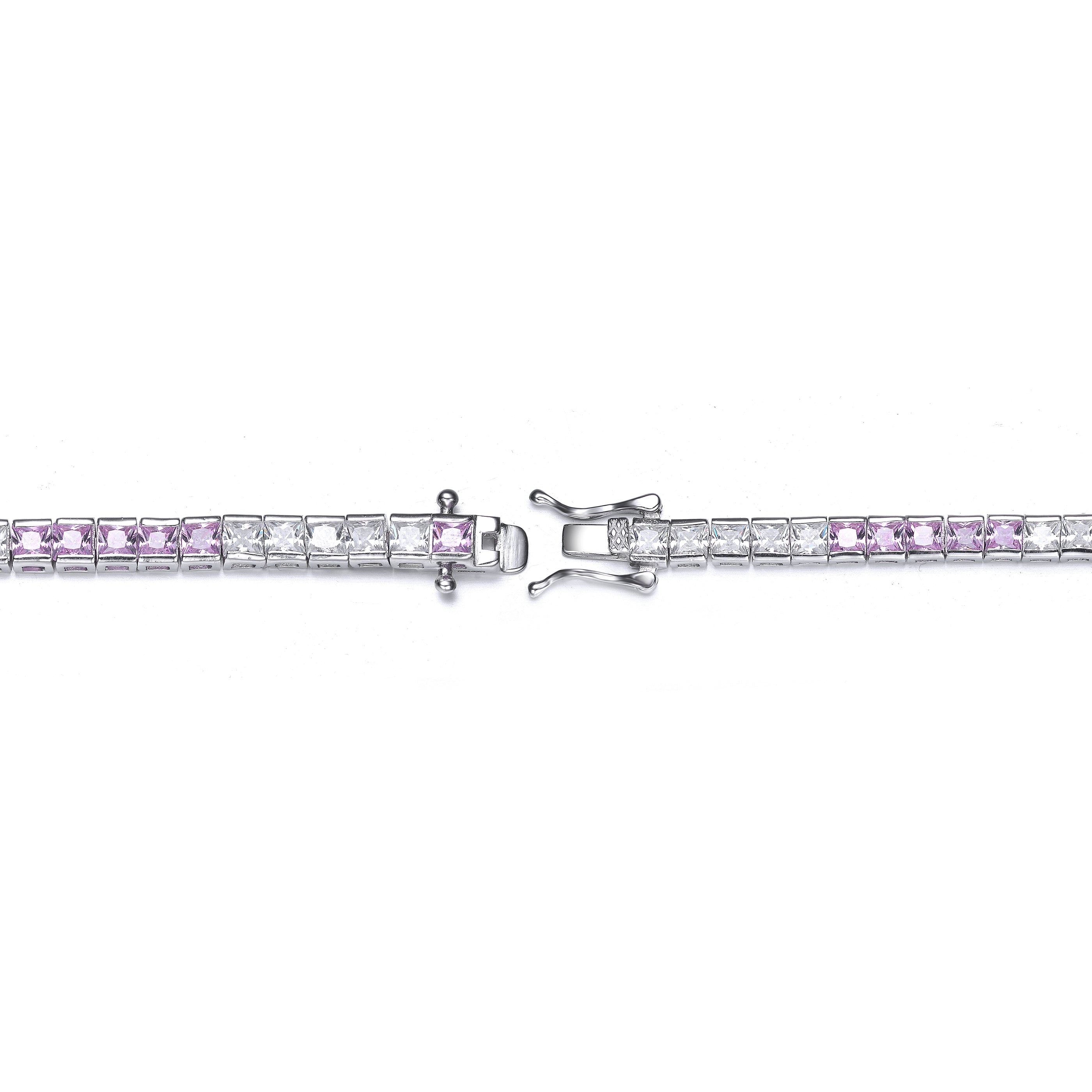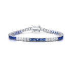 This elegant tennis-inspired bracelet adds a refined touch to any look. Designed in sterling silver, it showcases brilliant cubic zirconia stones available in multiple color variations, including Emerald Gold, Emerald, Black, Pink, Ruby Gold, Yellow, and Sapphire. Certain options feature gold plating, while others are offered in classic Rhodium Plating.