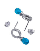 Elegant .925 Sterling silver blue topaz cubic zirconia teardrop earrings. These pretty dangle earrings feature bright blue cubic zirconia briolettes dangling from an circle design set with clear round cubic zirconia stones. Crafted of .925 Sterling silver with rhodium plating and secure with butterfly closure.