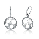 Stylish .925 Sterling silver cubic zirconia bubble brushed earrings. These stunning earrings feature clear round cut cubic zirconia stones with a Modern bubble design. Crafted of .925 Sterling silver the earrings secure with lever back closure.