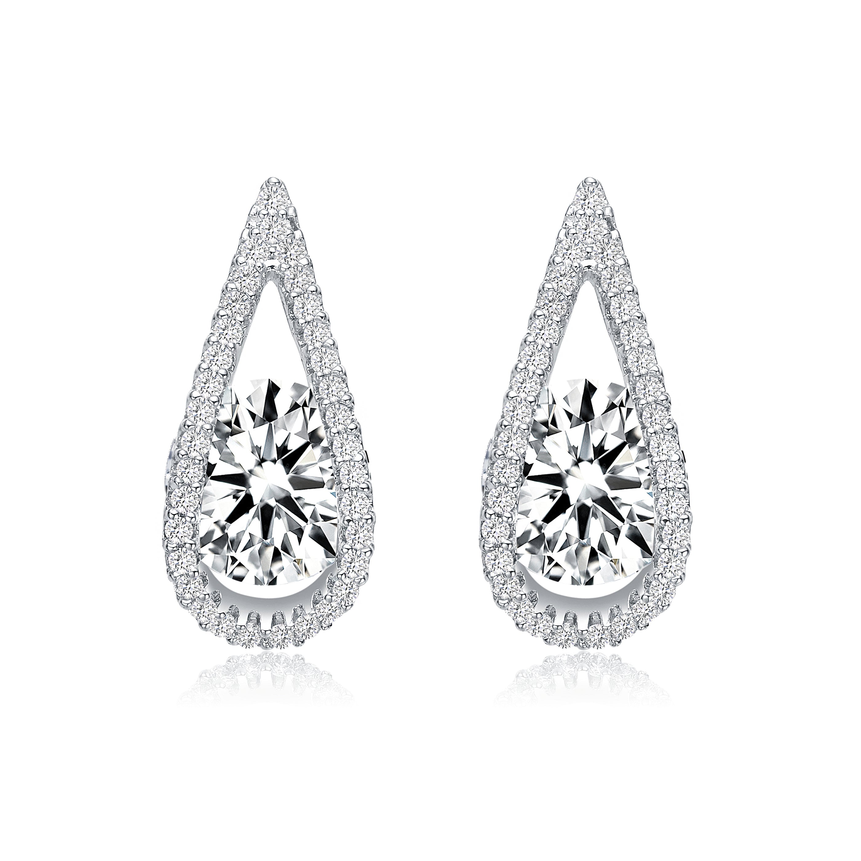 Simple yet beautifully crafted earrings feature an open pear shape. These earrings feature pear shaped frame studded with clear round cubic zirconia and a dazzling clear round cubic zirconia solitaire set in the center. Crafted of .925 Sterling silver with rhodium plating and secure with butterfly closure.