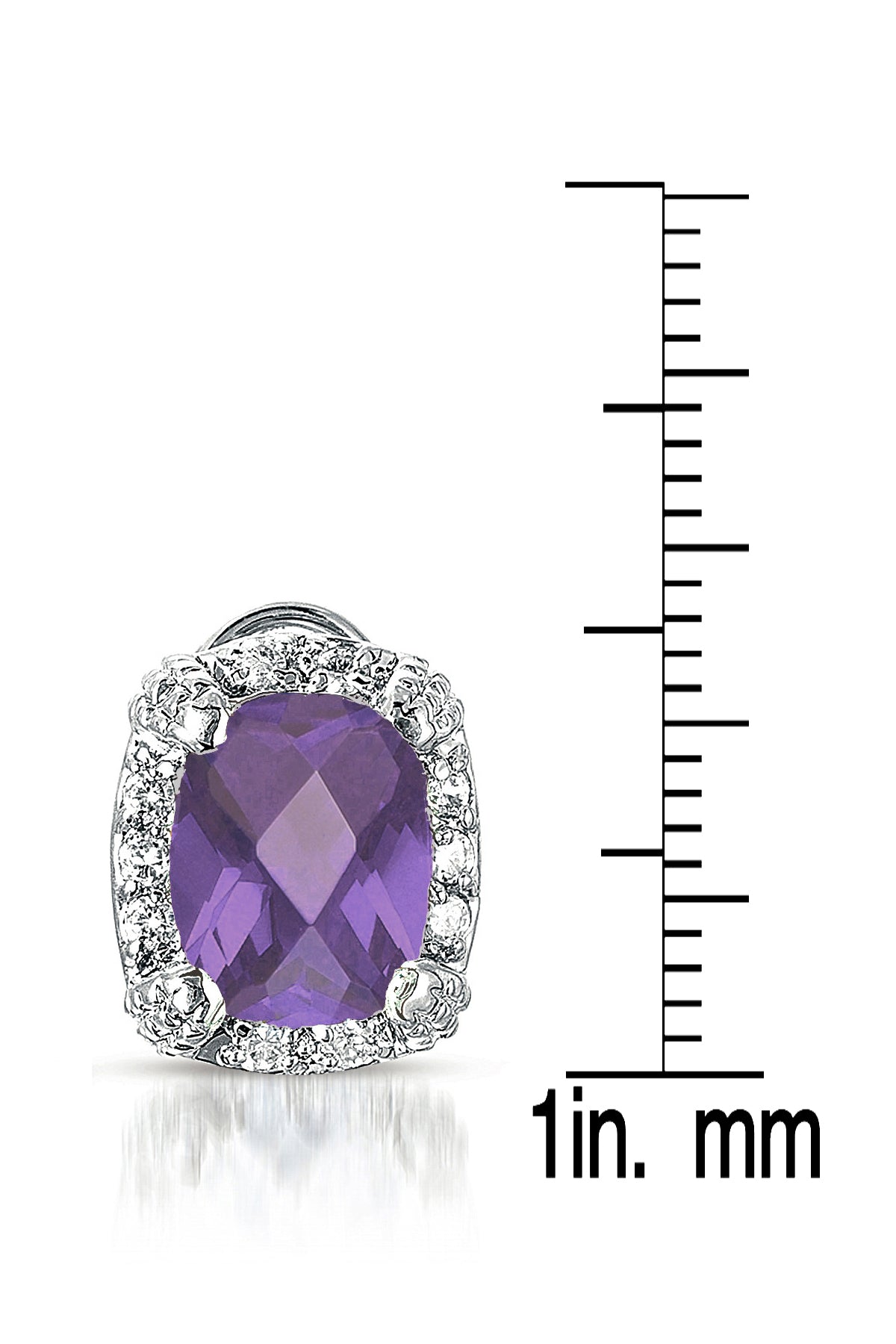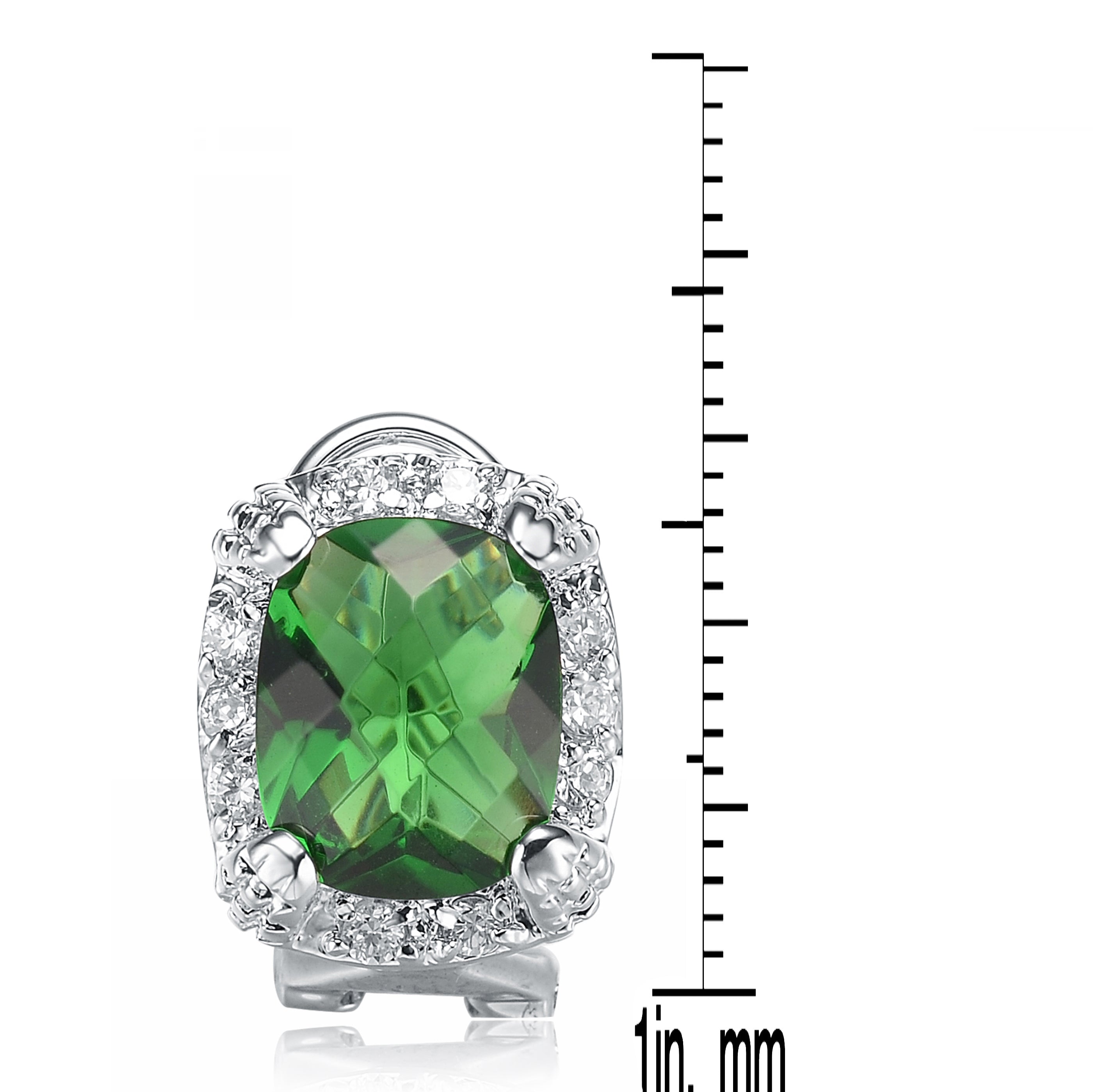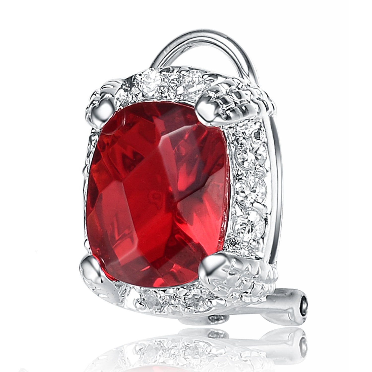 These stunning earrings feature a vibrant center stone in your choice of Ruby, Silver, Emerald, Lavender, or Sapphire cubic zirconia, each surrounded by a brilliant halo of sparkling clear stones. Crafted in .925 sterling silver with a rhodium-plated finish, they offer a radiant, eye-catching look and secure comfortably with butterfly backs.