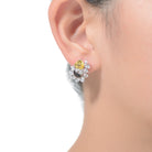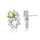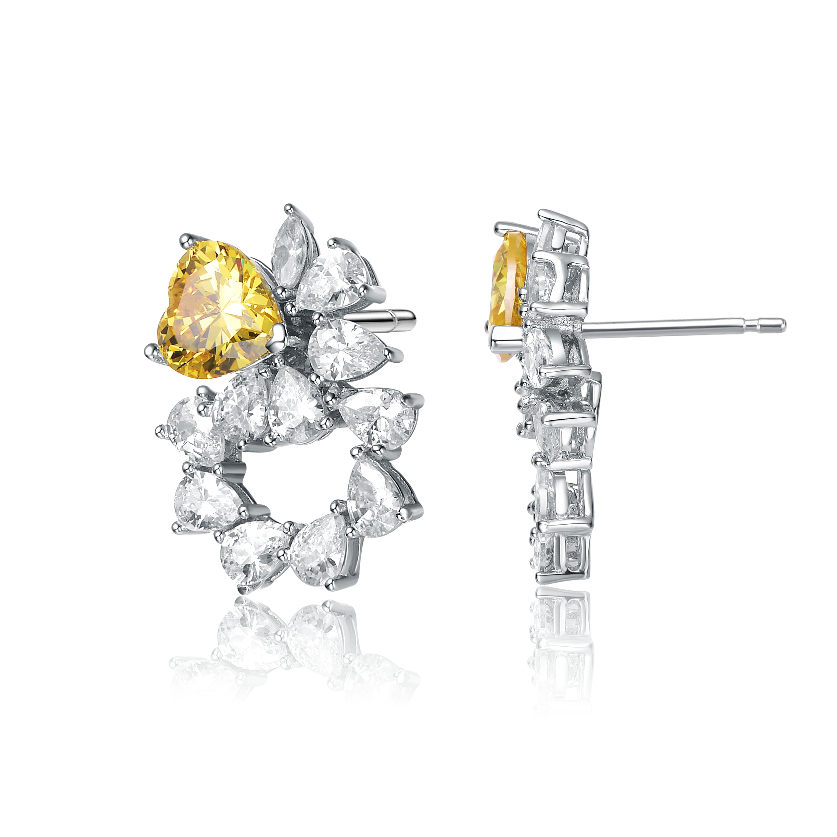 Stylish Sterling Silver Rhodium Plated Yellow Cubic Zirconia Floral Stud Earrings. This elegant pair of earrings features interesting floral design made out of silver frame, and small clear round and pear cubic zirconia stones set in prong setting are set and accented with yellow heart shaped cubic zirconia stone. Crafted of Sterling Silver with Rhodium Plating and it is secured with butterfly closure. Perfect piece of jewelry for stylish combinations. This item also makes a sensational gift.