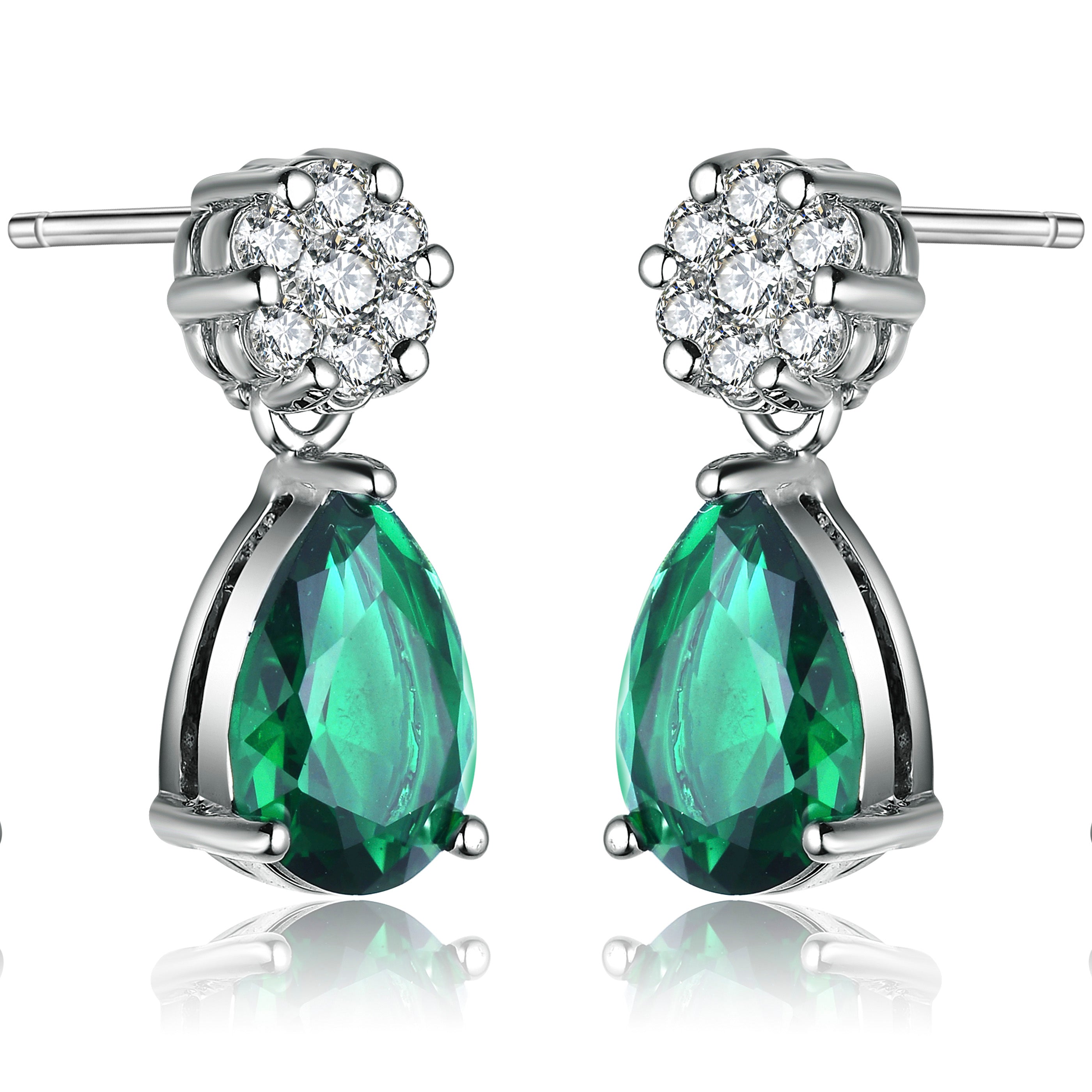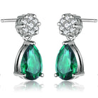 These elegant earrings are ideal for an elegant evening out. Eahc set features a pear shaped green big Cubic Zirconia stone is the focal point of these earrings, and is accented with a cluster of white Cubic Zirconia solitaires.