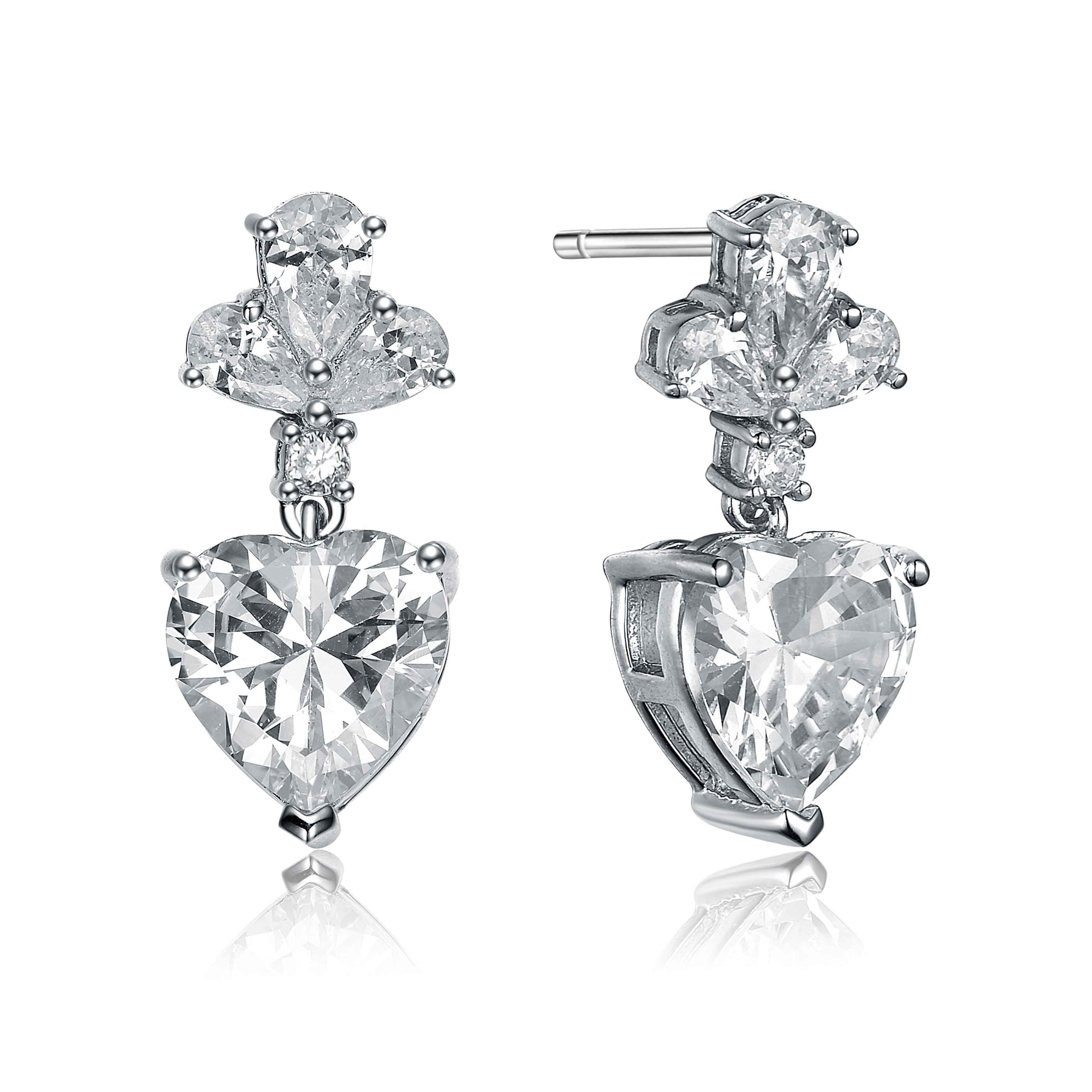 Sterling Silver in White Gold Plated Aset in Cubic Zirconia Stones. A rare cut triangle cubic zirconia is at the core of this mesmerizing set of sterling silver earrings. Give them as a gift or wear them for a formal night out.