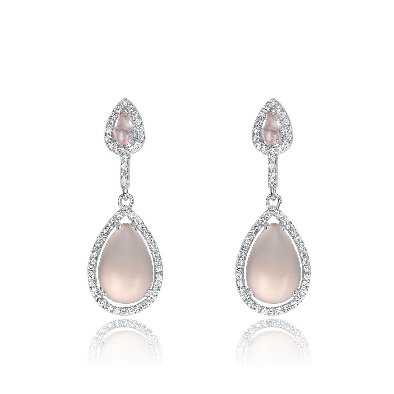 Elegant .925 Sterling silver champagne cubic zirconia dangling earrings. Add a touch of sparkle to your look with these silver tone plated earrings. These earrings are adorned with gorgeous champagne pear stones accented by small clear round cubic zirconia stones. Crafted of .925 Sterling silver with rhodium plating and secure with butterfly closure.