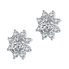 Classy stud earrings that is designed to enhance your look with its' sleek style. These earrings feature a clear round cubic zirconia center stone surrounded with smaller clear round cubic zirconia. Each stones are separated evenly making these earrings look bigger. These are set in .925 Sterling silver with rhodium plated and secures with butterfly clasp.