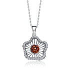 This fiery heart inspired piece is ideal for any jewelry collection. Each piece is constructed of .925 Sterling silver and features red and white cz stones.