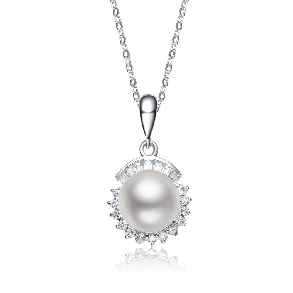 Sleek and sophisticated, light up your look with this jewelry box classic. Set in .925 Sterling silver, this sparkling pearl pendant features a luminous white freshwater pearl accented by a crest of cz accents. It comes with an 18 inch chain and has a spring ring closure.