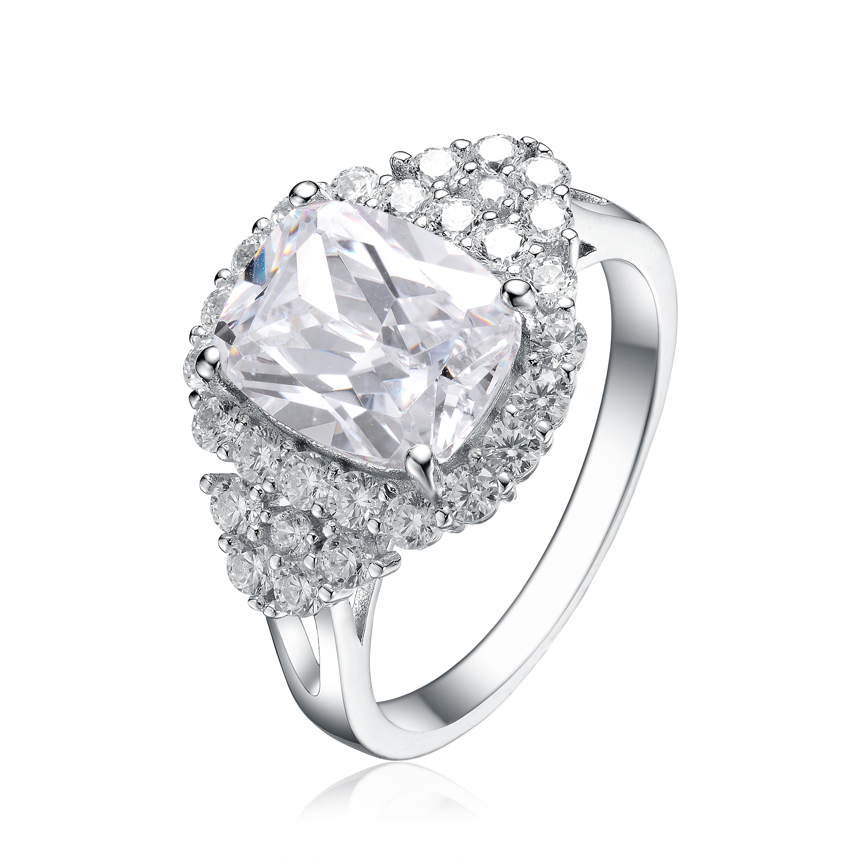 Classy .925 Sterling silver rose gold plated amethyst cubic zirconia pave cocktail ring. This exceptional ring features a large amethyst purple rectangle cubic zirconia stones surrounded by clusters of clear cubic zirconia stones. Crafted of .925 Sterling silver with rhodium and rose gold plating and it is available in sizes 6, 7, 8. Makes a great gift as well.