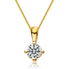 .925 Sterling Silver With Gold Plated Clear Round Cubic Zirconia Solitaire Necklace