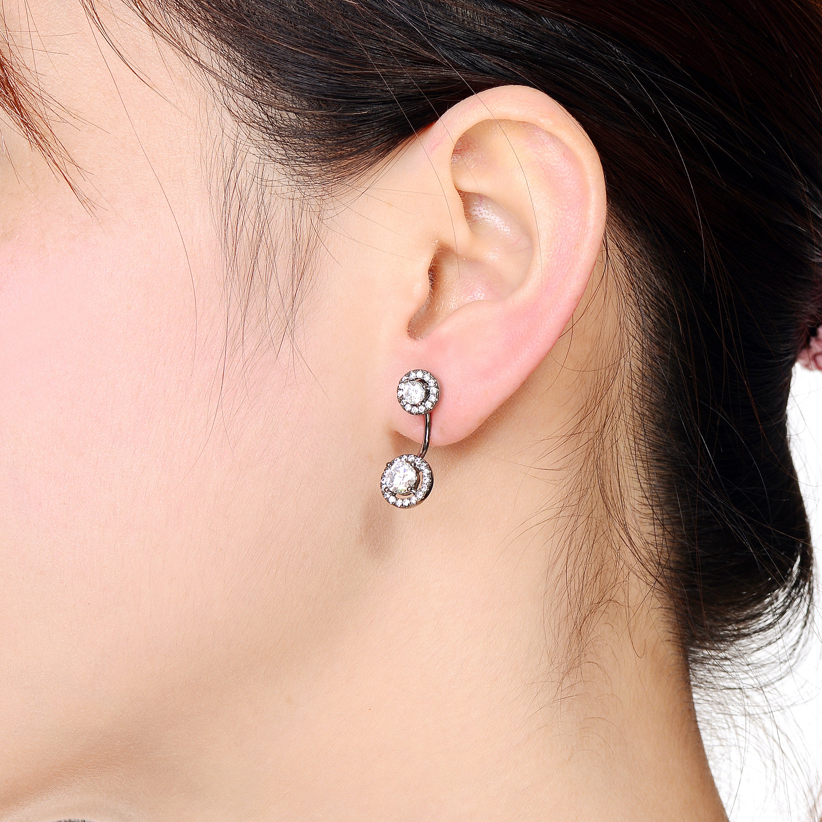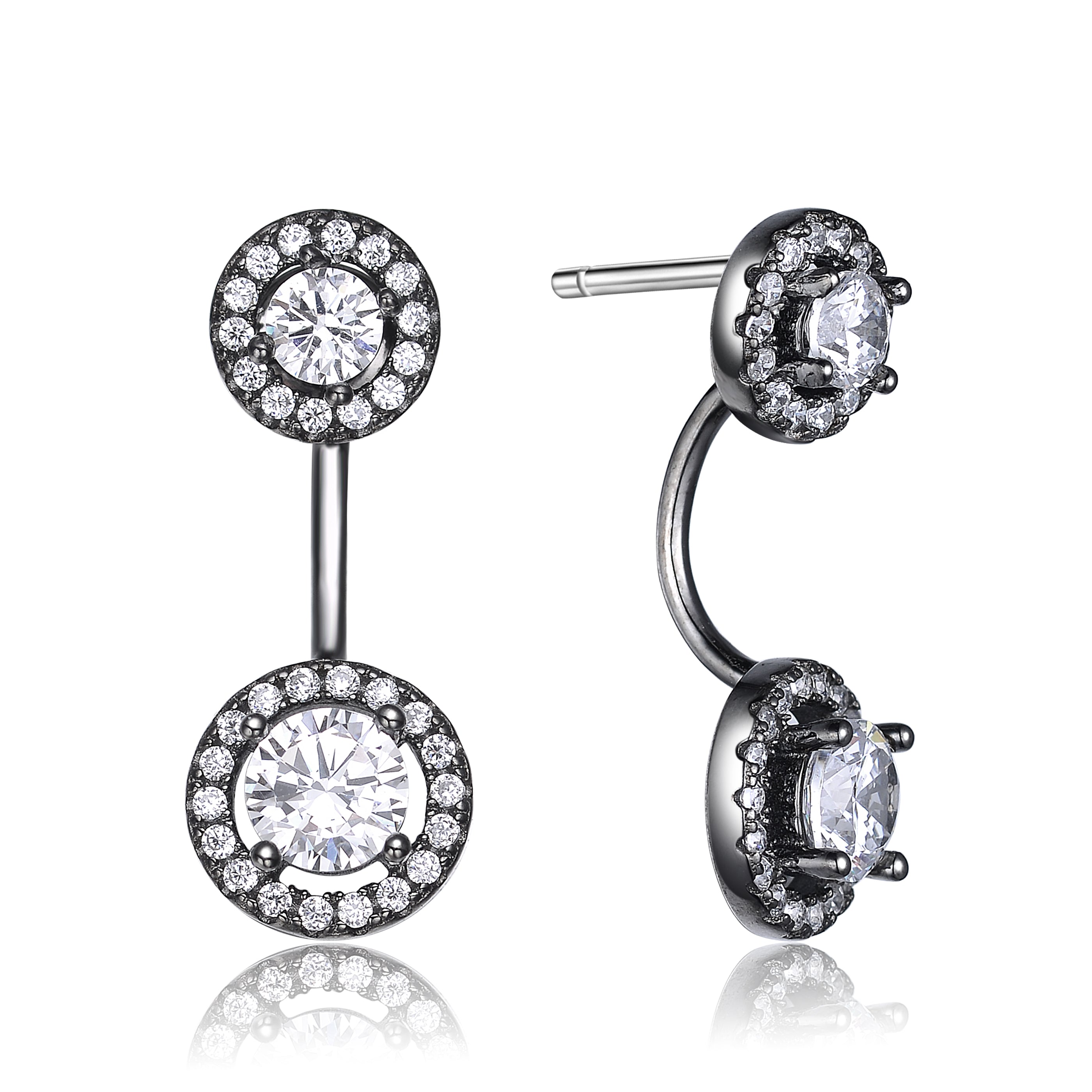 Alluring round cut cubic zirconia solitaires are the bones of these exquisite rose gold overlay dangle earrings. The jacket of smaller cubic zirconia stones adds a new dimension.