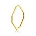 Elegant Sterling Silver with 14K Gold Plated Geometrical Bangle Bracelet. This beautiful Geometrical Cubic Zirconia bangle bracelet features clear round shimmering Cubic Zirconias set in channel setting. Perfect piece of jewelry for stylish combinations. This also makes a sensational gift for a special birthday or occasion.