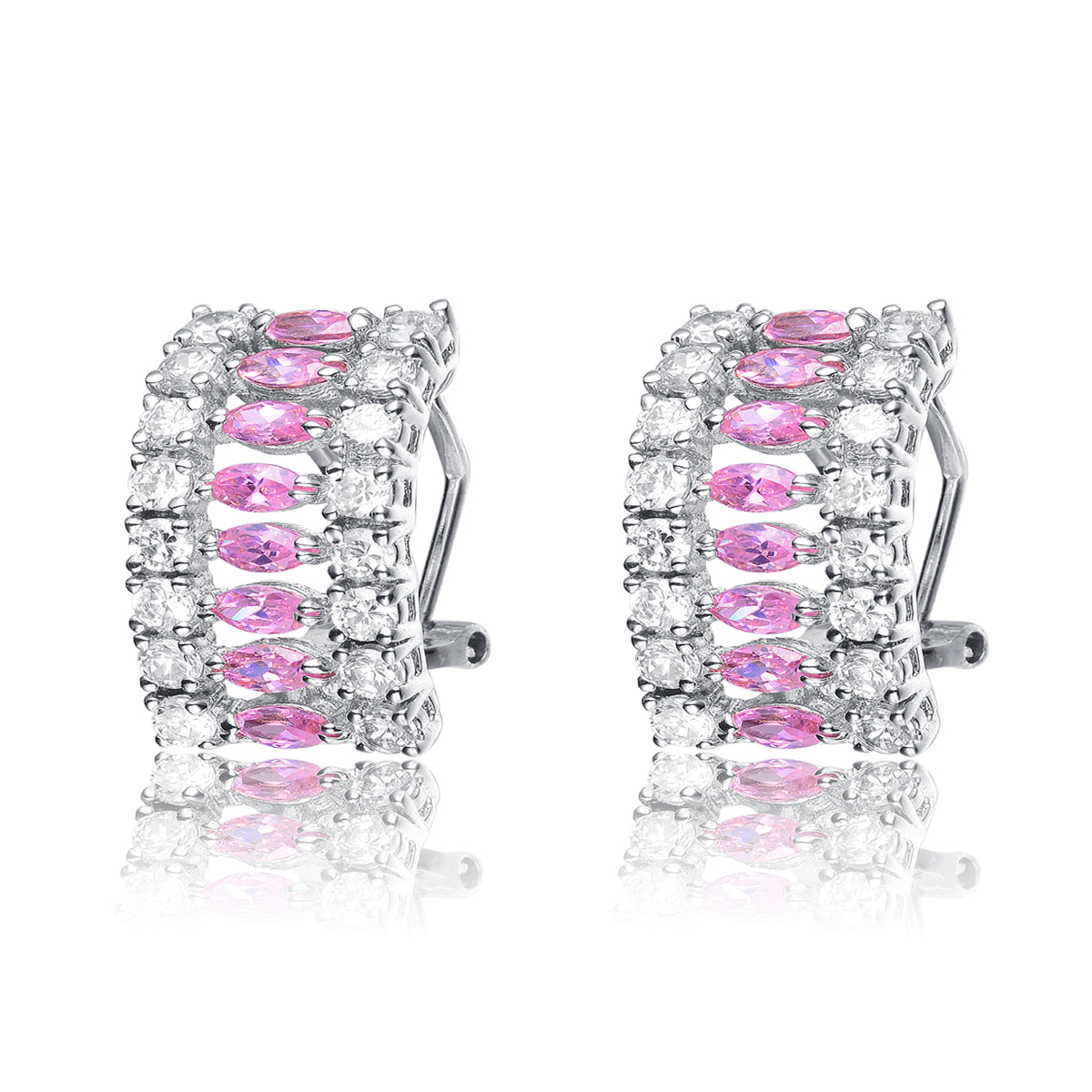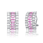 A row of pink cubic zirconias surrounded by two rows of clear cubic zirconias create brilliant stripes for these fancy set of earrings. They’re the perfect complement piece for formal attire.