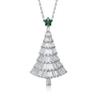 A festive fir tree pendant/brooch encrusted with cubic zirconia and a star-shaped stone at the top in Emerald Green. Add it to a simple link chain to wear as a necklace or pin it to your outfit as a dazzling brooch. With a white gold finish, this stoned pendant/brooch will give a festive touch to any outfit. It measures 3.3 x 6.3 cm. Comes with a complimentary chain to wear it as a necklace or brooch pin.
