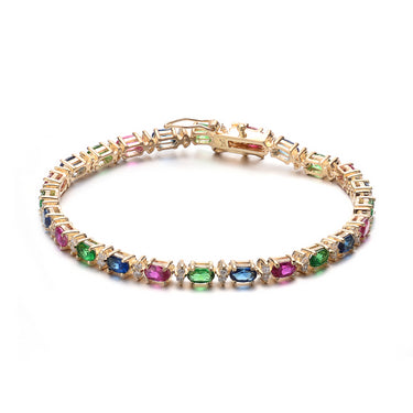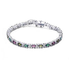 Add a touch of elegance to your wrist with this classy tennis bracelet. Crafted in sterling silver, it showcases a stunning array of colored cubic zirconia stones that deliver timeless charm and refined sparkle. A perfect accessory to elevate both everyday and evening looks.