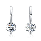 These exquisite earrings blend timeless elegance with a modern touch. Each hoop, available in radiant white gold plating or luxurious 14K gold plating, boasts a smooth, polished finish that enhances its sophisticated appeal. Dangling gracefully from the hoop is a brilliant round-cut Moissanite, securely set in a prong setting to maximize its light-catching sparkle. The combination of sleek metal and dazzling Moissanite creates a refined yet glamorous look, perfect for both casual outings and special occasions. Elevate your jewelry collection with these stunning drop hoop earrings that exude charm and sophistication.