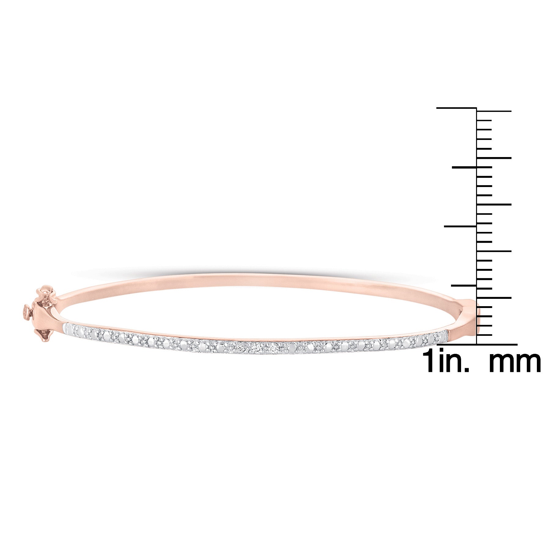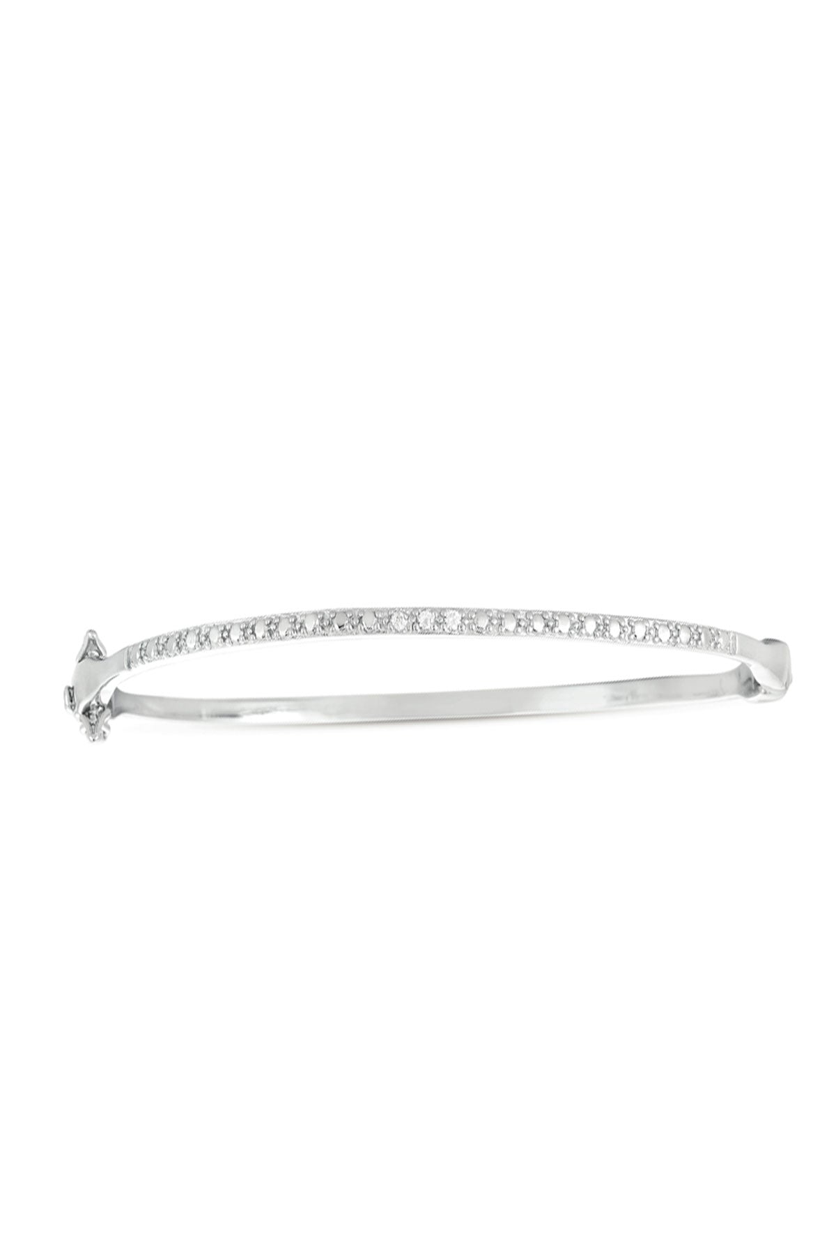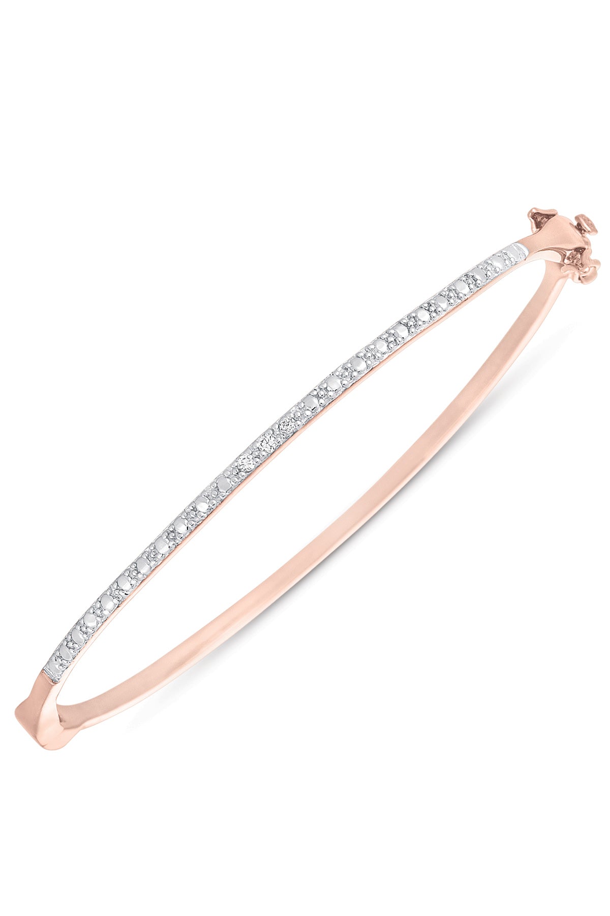 This sturdy fine bracelet of sterling silver dons a splatter of clear cubic stoning for a shimmering face with smooth siver, with rose plating edges to complete the second half.