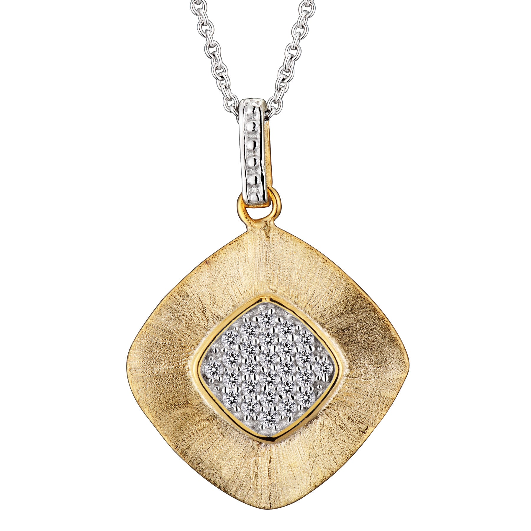 This dainty pendant features round-cut cubic zirconia stones creating a shape. Crafted of .925 sterling silver with gold plating, the necklace secures with a spring ring clasp.